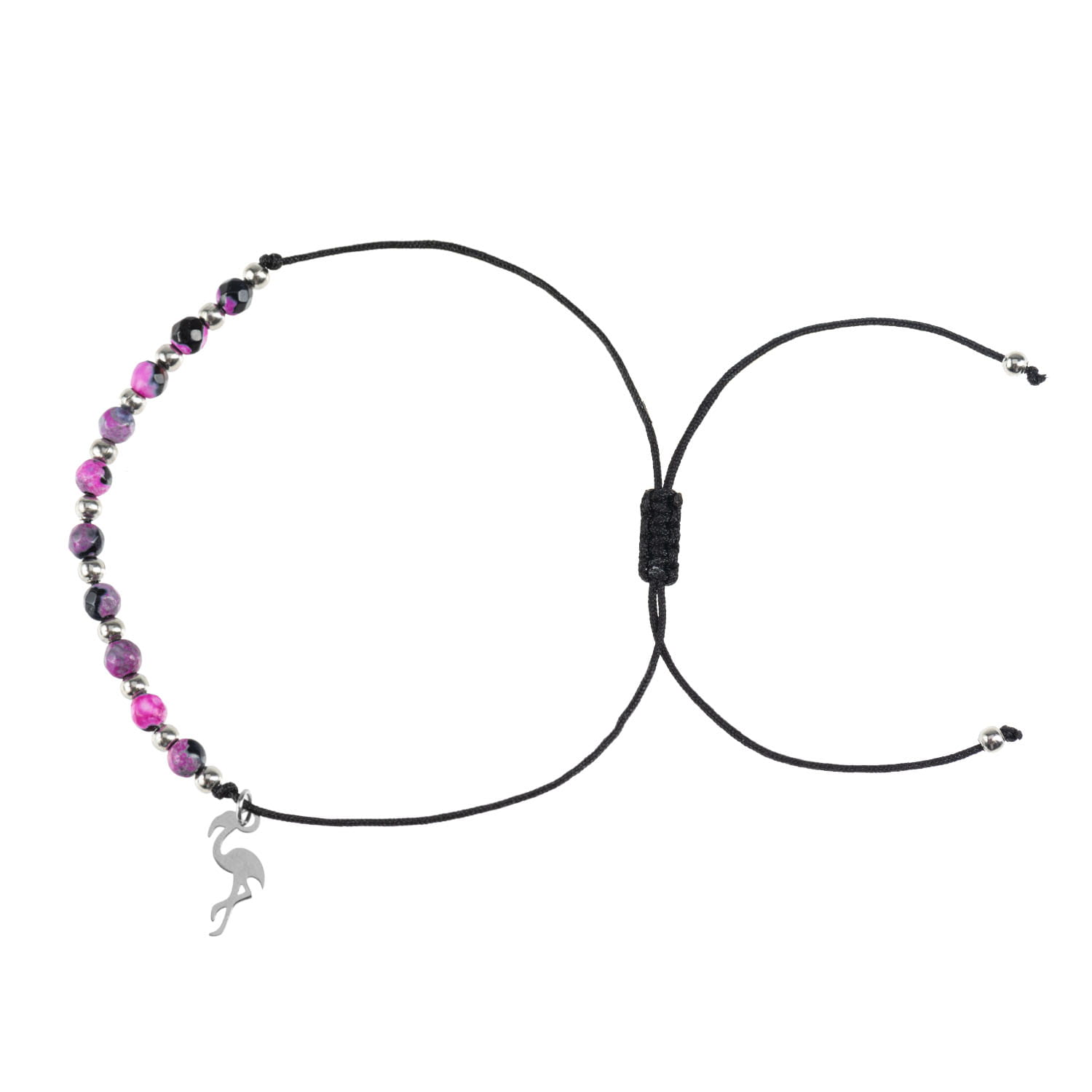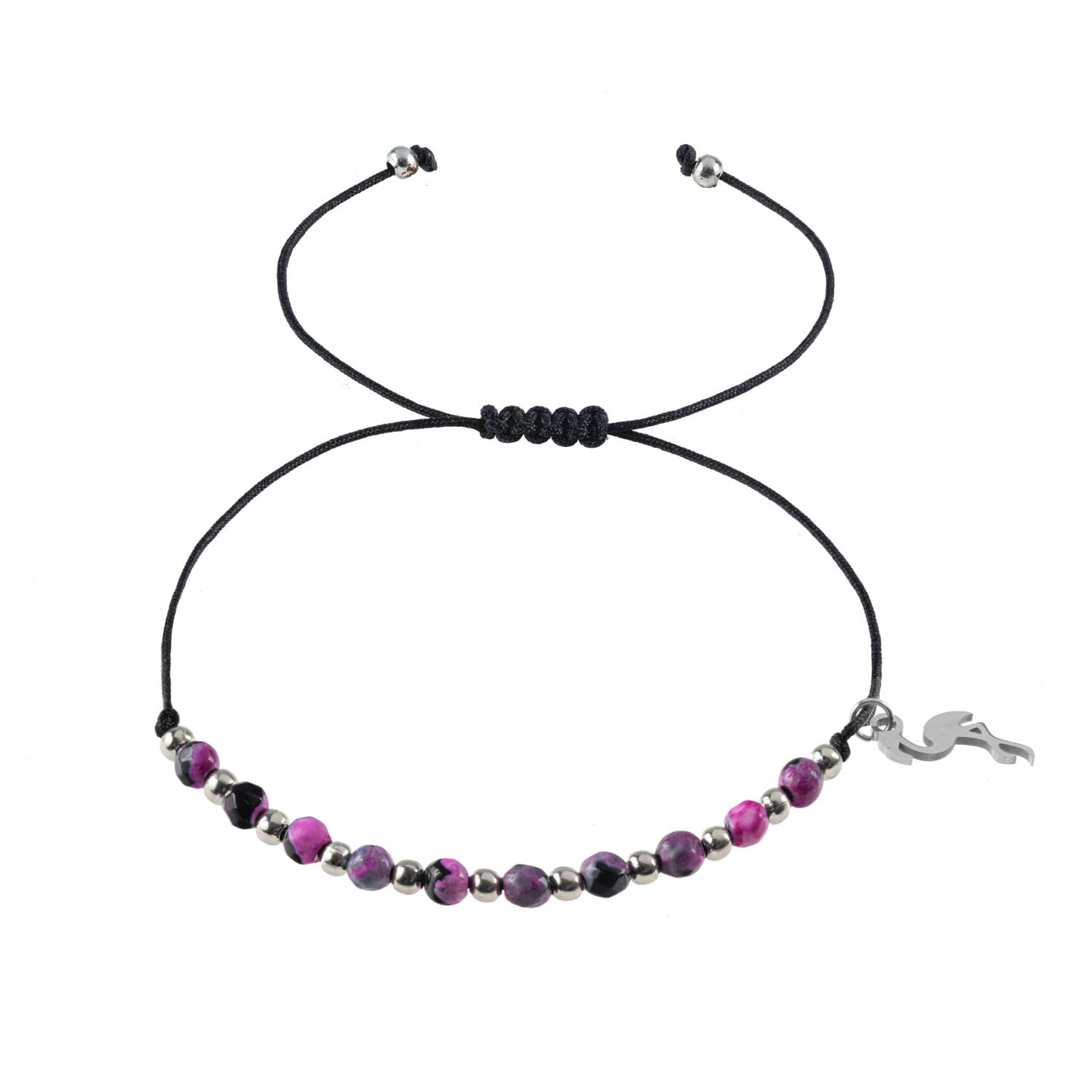 Ręcznie wykonana bransoletka z kamienia naturalnego na czarnym sznurku o regulowanej długości z ozdobną zawieszką ze stali szlachetnej.