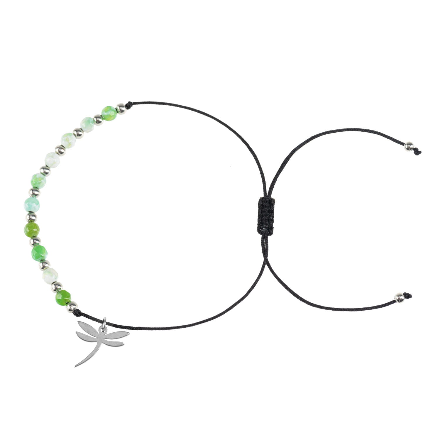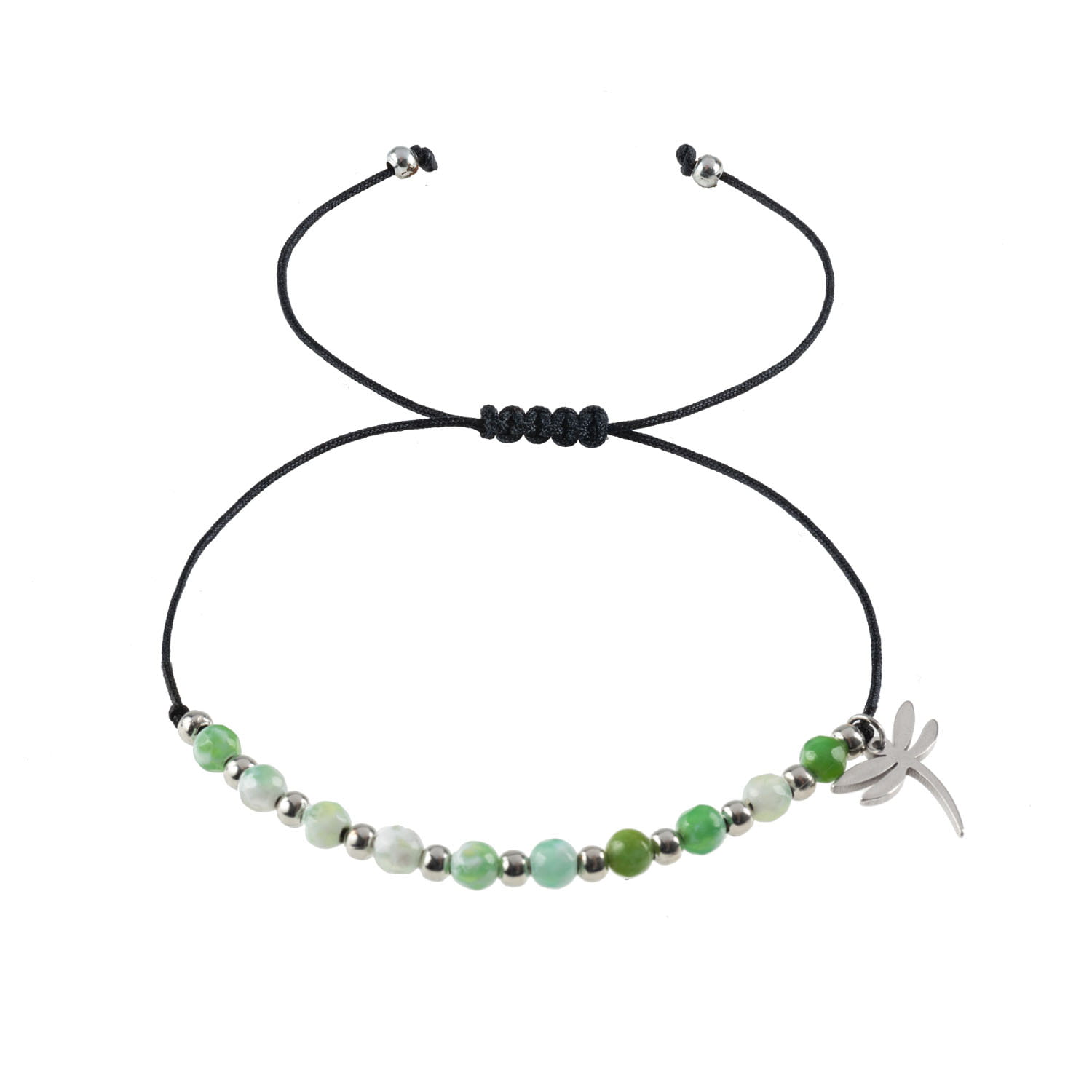 Ręcznie wykonana bransoletka z kamienia naturalnego na czarnym sznurku o regulowanej długości z ozdobną zawieszką ze stali szlachetnej.