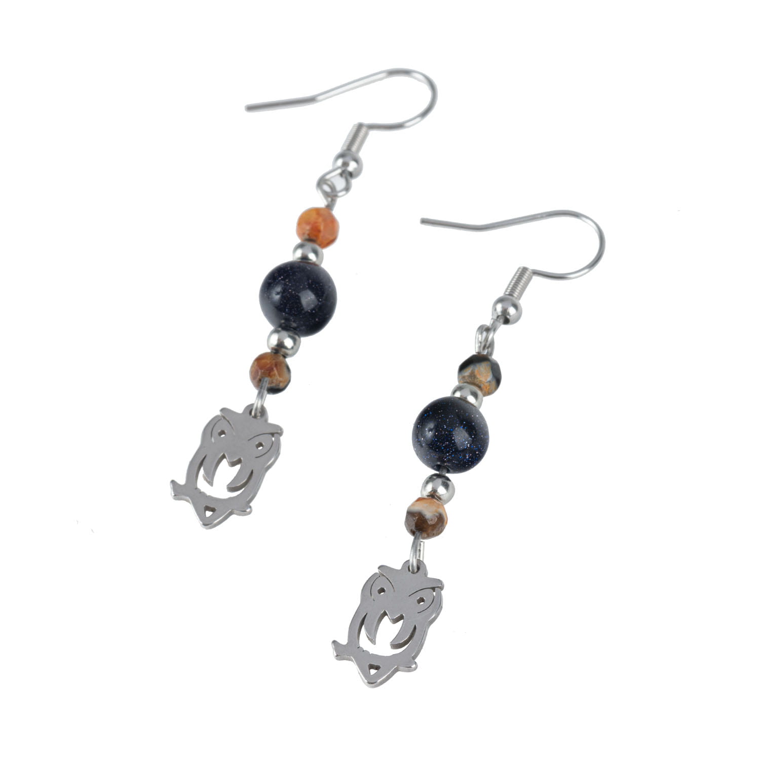 Ręcznie wykonane kolczyki z kamieni naturalnych z ozdobną zawieszką ze stali szlachetnej.