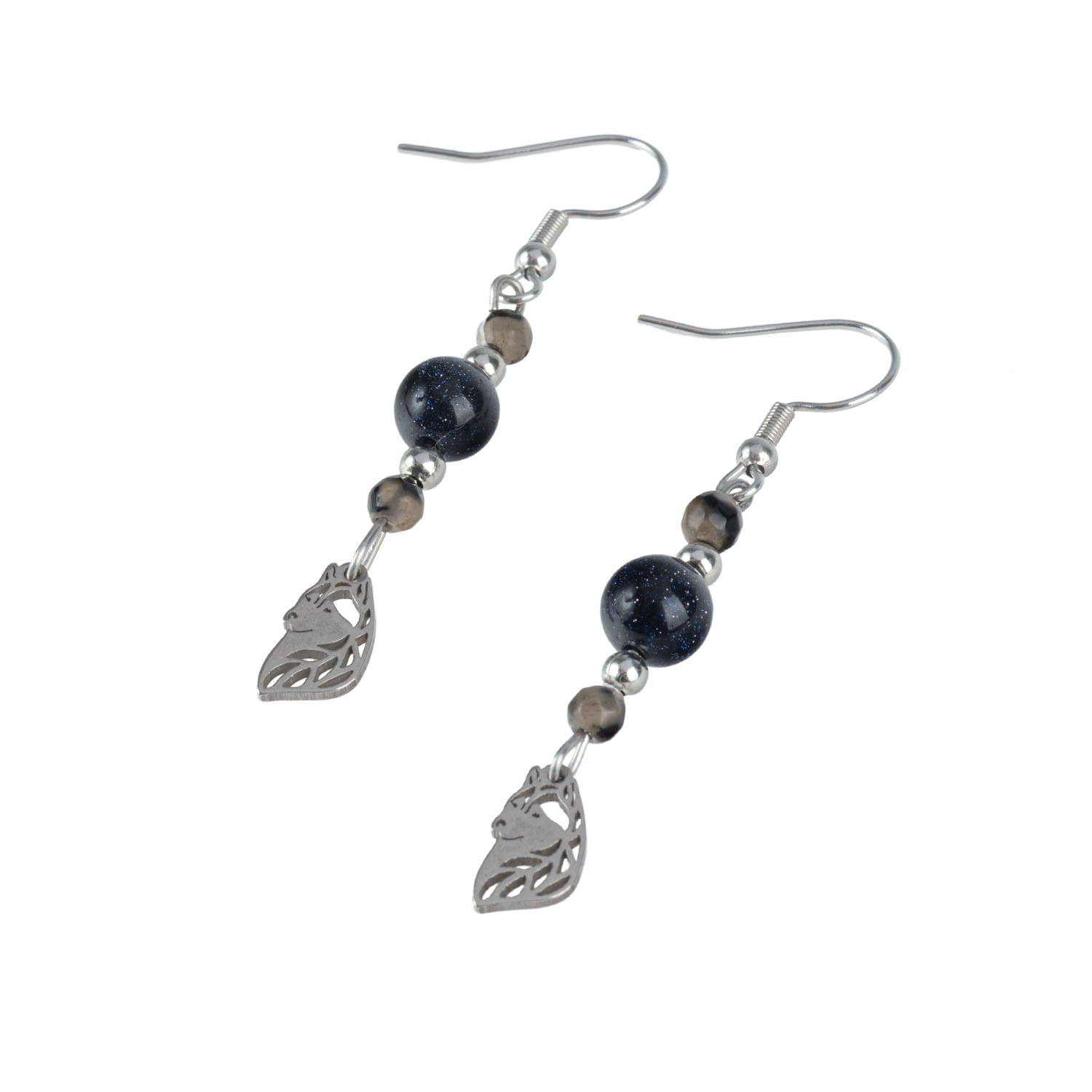 Kolczyki idealnie pasują do bransoletki i naszyjnika z Zestaw biżuterii - Zwierzęta Mocy - wilk.
