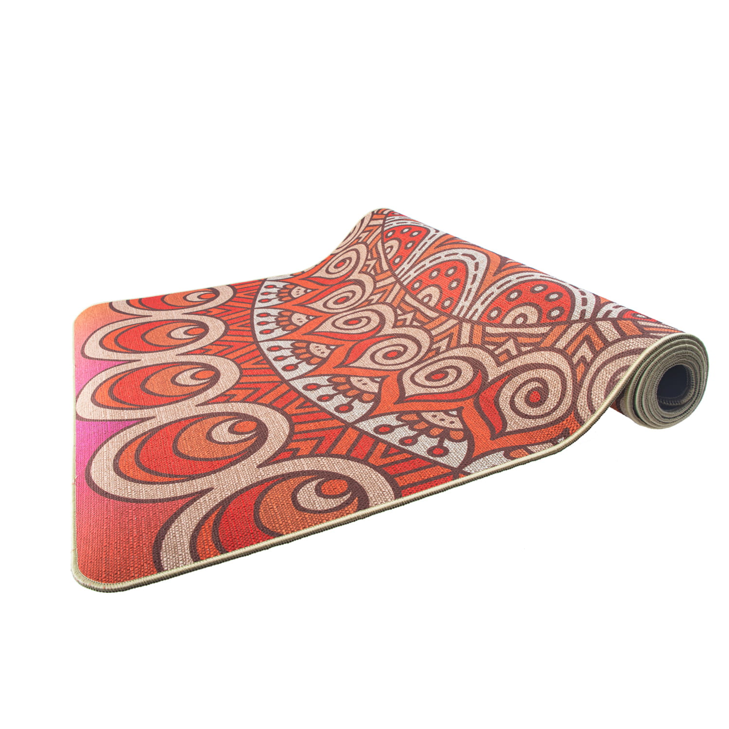 Wielobarwna mata do jogi z orientalnym wzorem – indyjską mandalą to wersja dla miłośników ekologii i odważnej kolorystyki.
