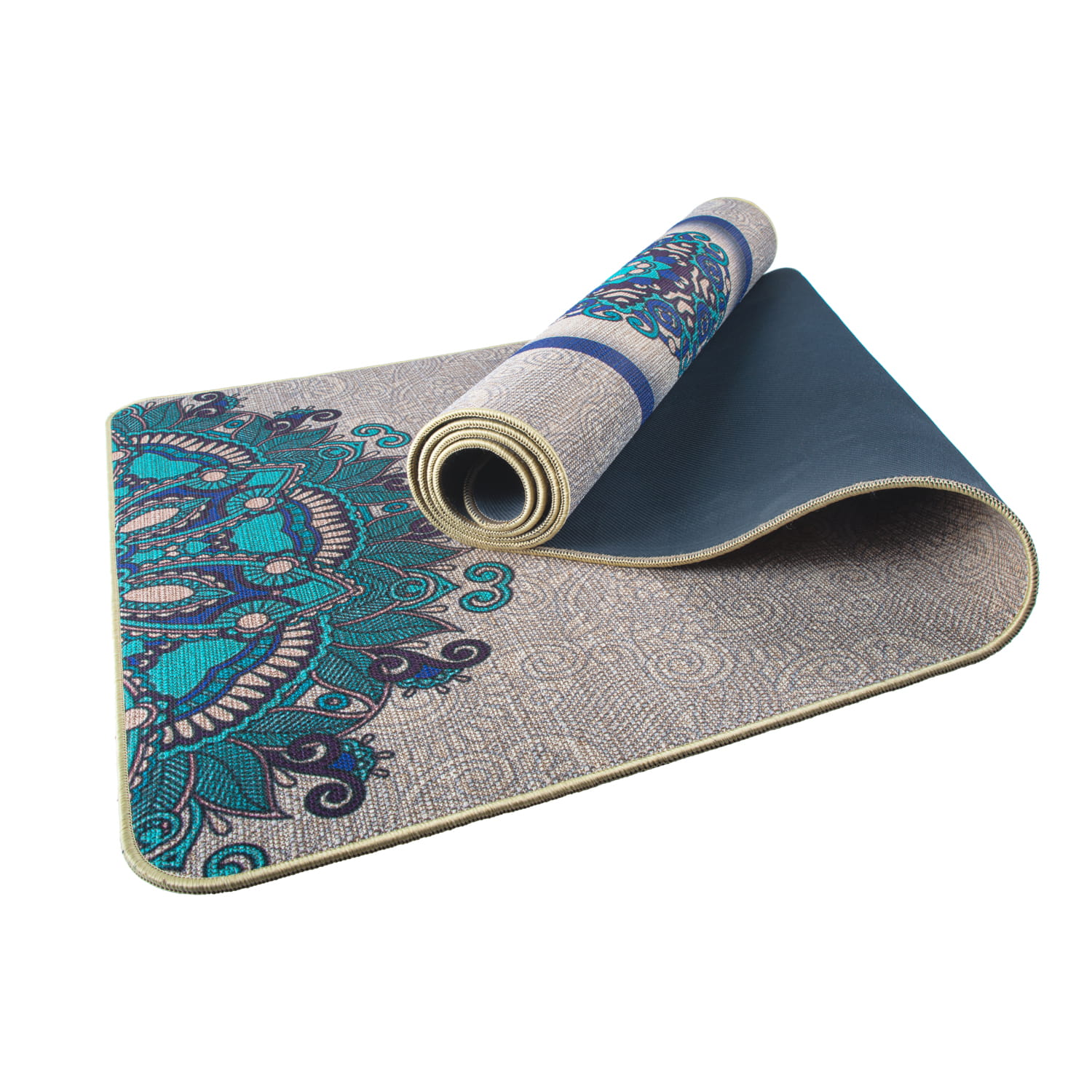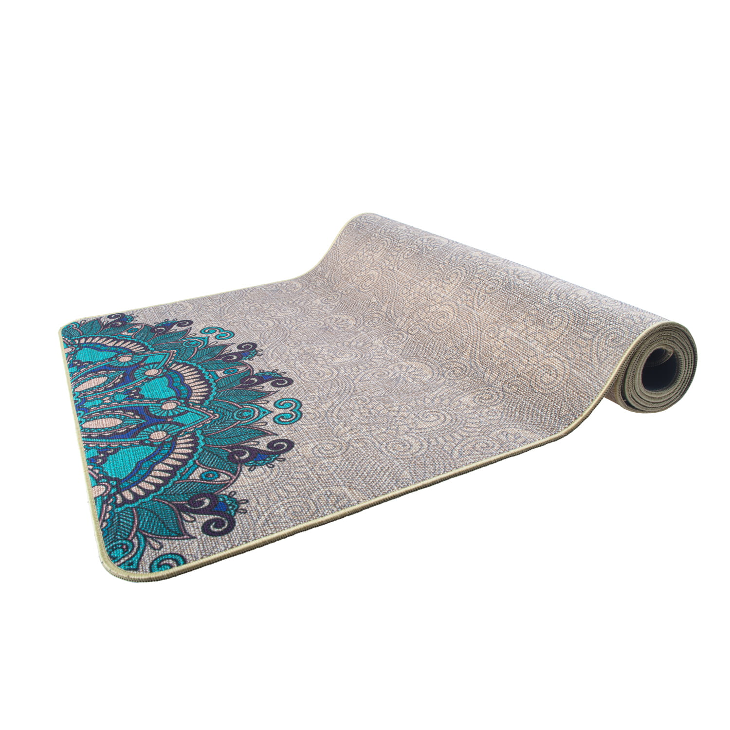 Lniana mata do jogi z motywem mandali. Ekologiczna mata w całości wykonana z biodegradowalnych materiałów - lnu oraz naturalnego kauczuku. Zastosowanie materiałów pochodzących z natury sprawia, że mata ta „oddycha” w trakcie treningu.