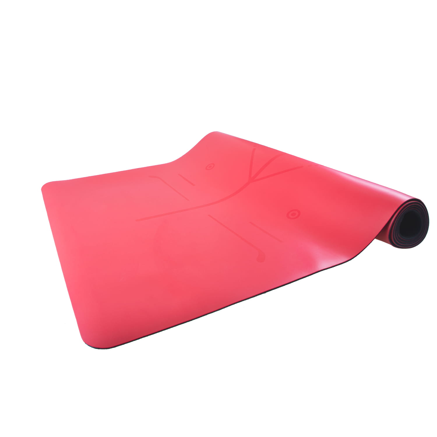 Centralną część maty zdobi orientalny symbol Siddhasana – pozycja mędrca (przez wielu uznawana za jedną z najlepszych pozycji do praktykowania pranajamy oraz medytacji). Na macie umieszczono także linie pomocnicze, ułatwiające przybieranie konkretnych asan. Doceni je z pewnością każdy, kto dopiero rozpoczyna swoją przygodę z jogą. Całość dopełnia intensywnie czerwona barwa rozbudzająca w nas radość, witalność oraz zachęcająca do działania.