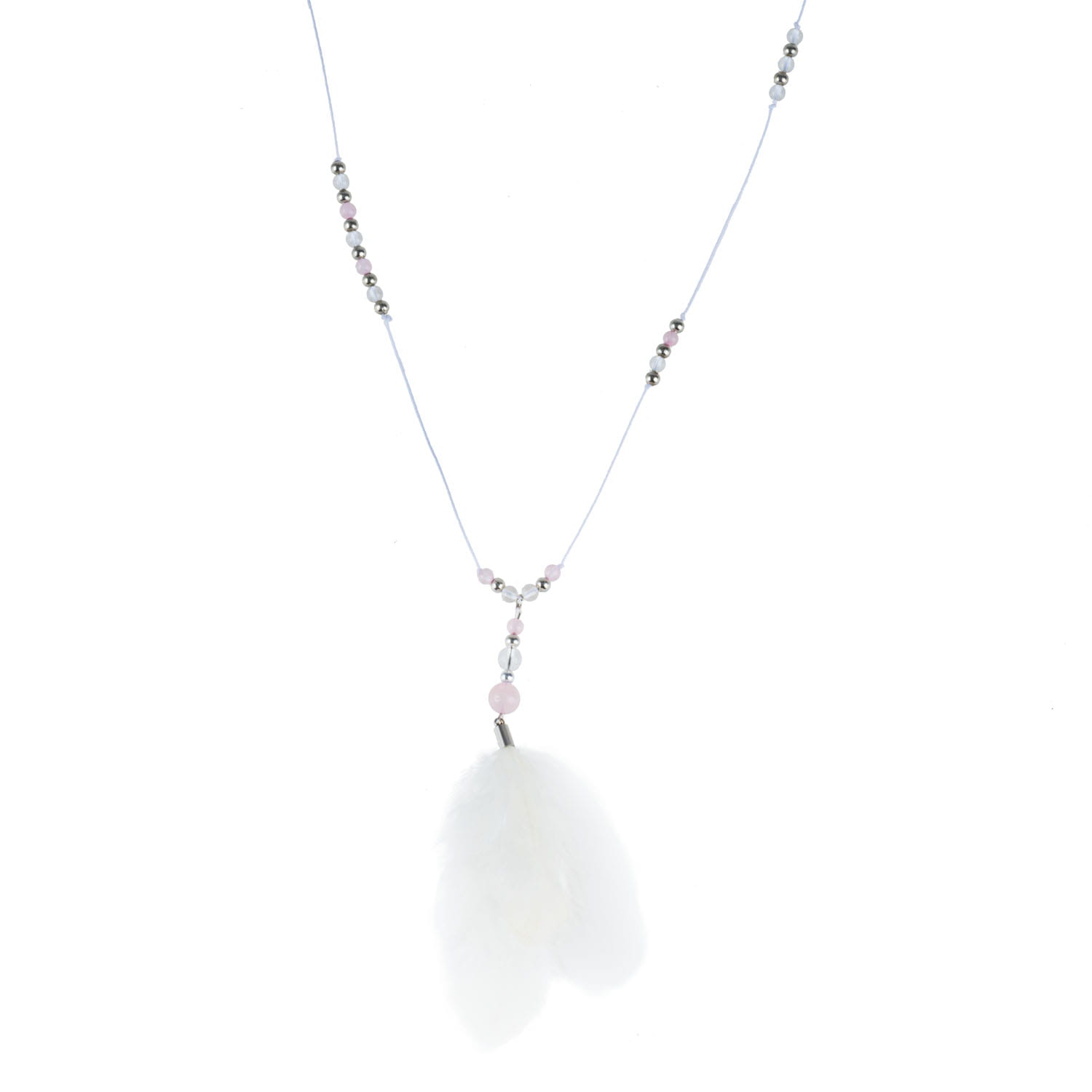 Ręcznie wykonany naszyjnik z naturalnych Piór i kamieni na sznurku o regulowanej długości.