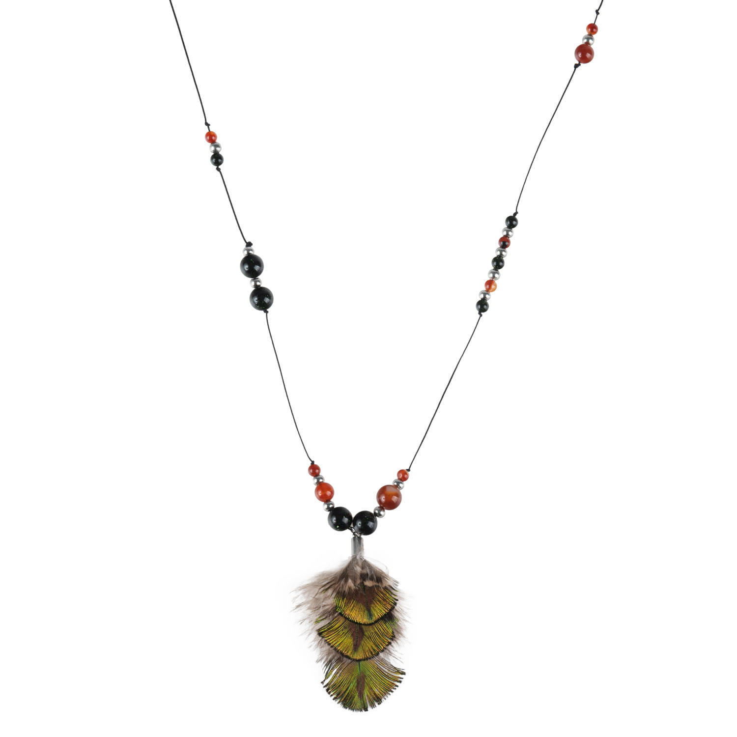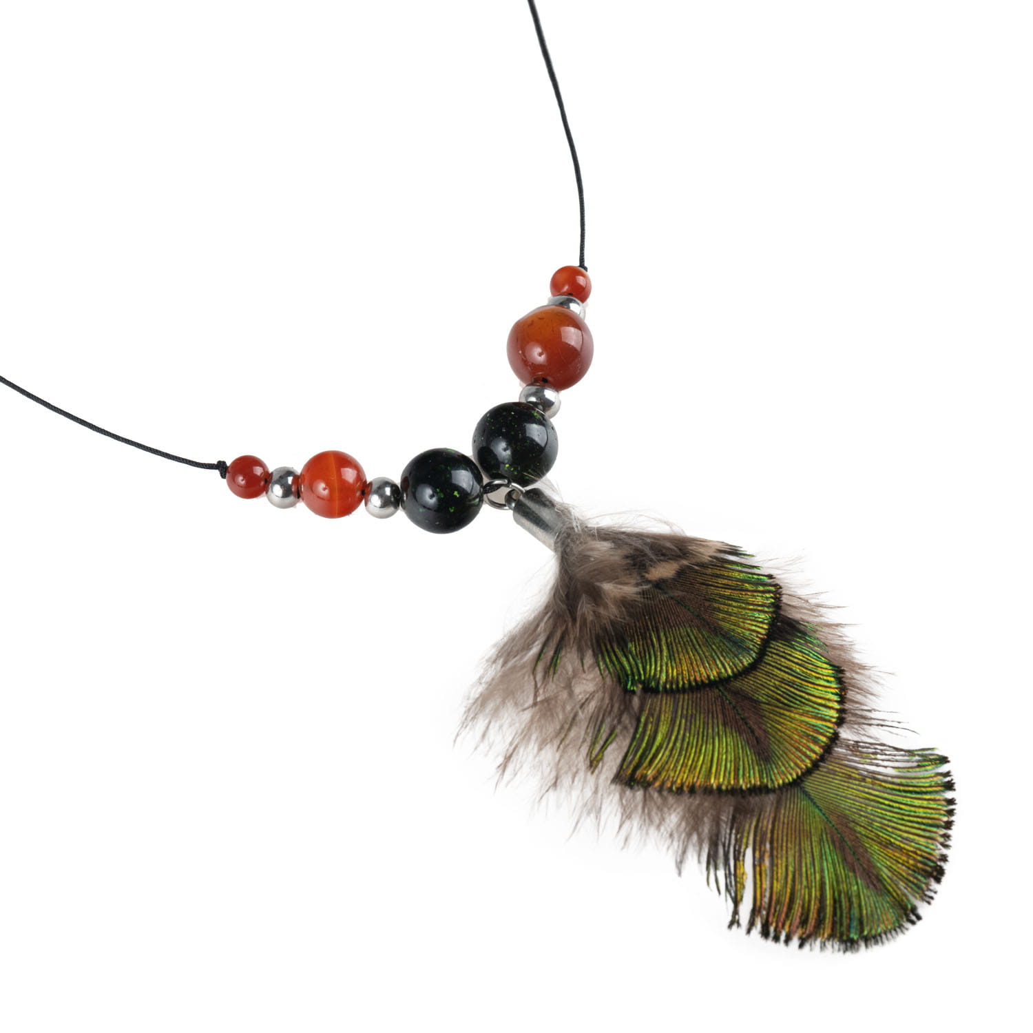 Ręcznie wykonany naszyjnik z naturalnych Piór i kamieni na sznurku o regulowanej długości.