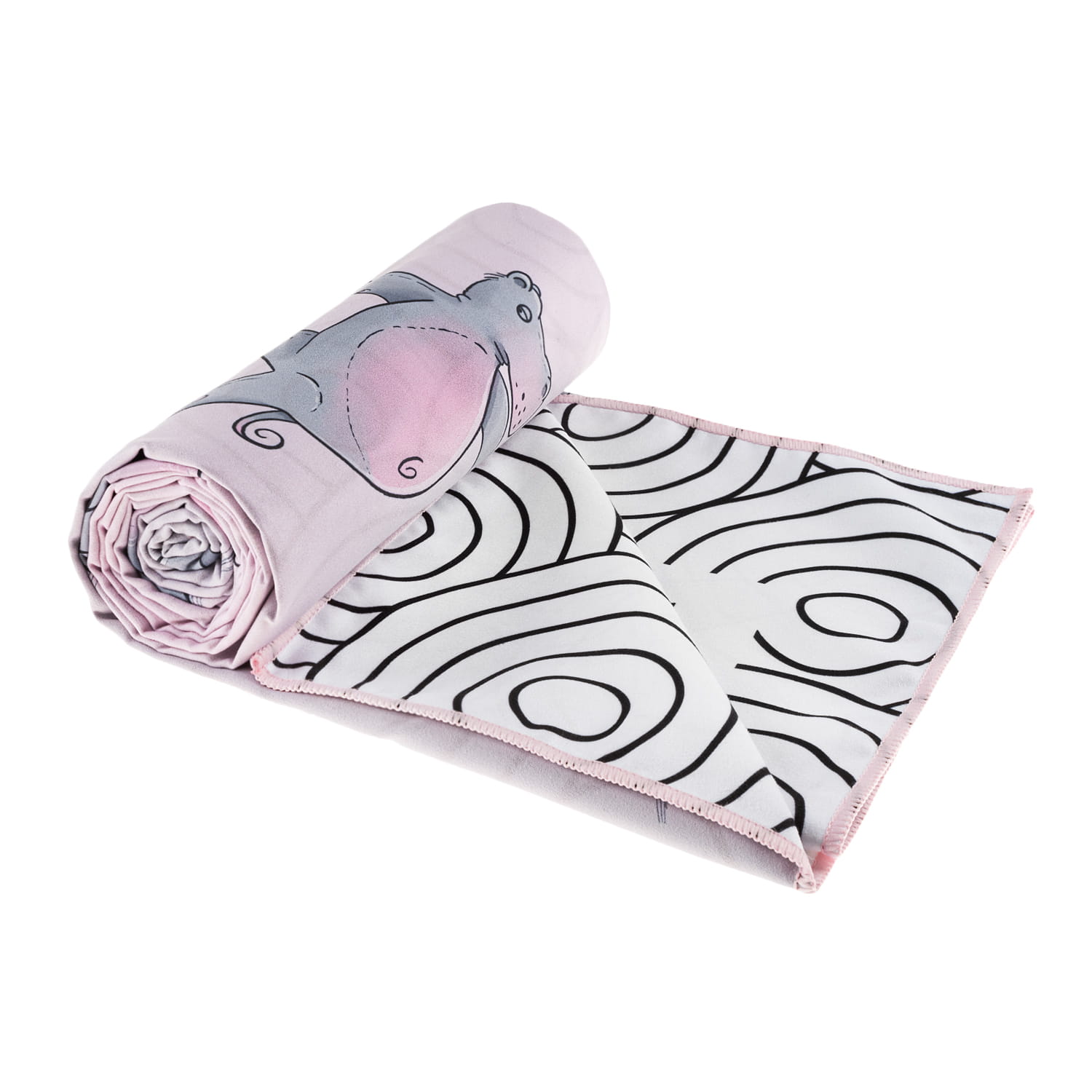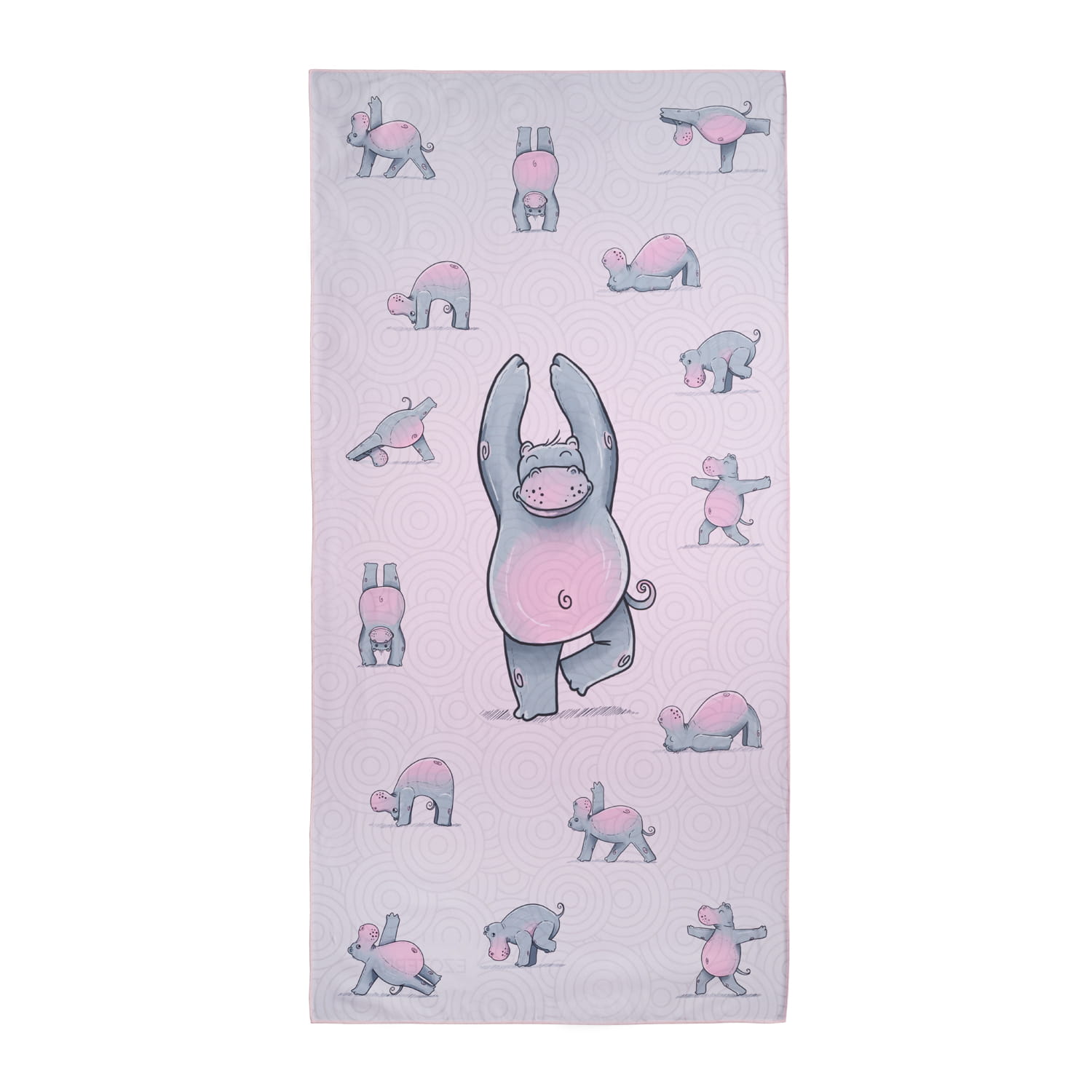 Wielofunkcyjny, przyjemny w dotyku i chłonny ręcznik z motywem hipopotamów, trenujących różnorodne asany. Idealny ręcznik do praktyki jogi zarówno dla dzieci, jak i dorosłych. Mięciutki ręcznik nie podrażni delikatnej i wrażliwej skóry. Oryginalna grafika zachęci do ćwiczeń i treningu.