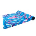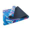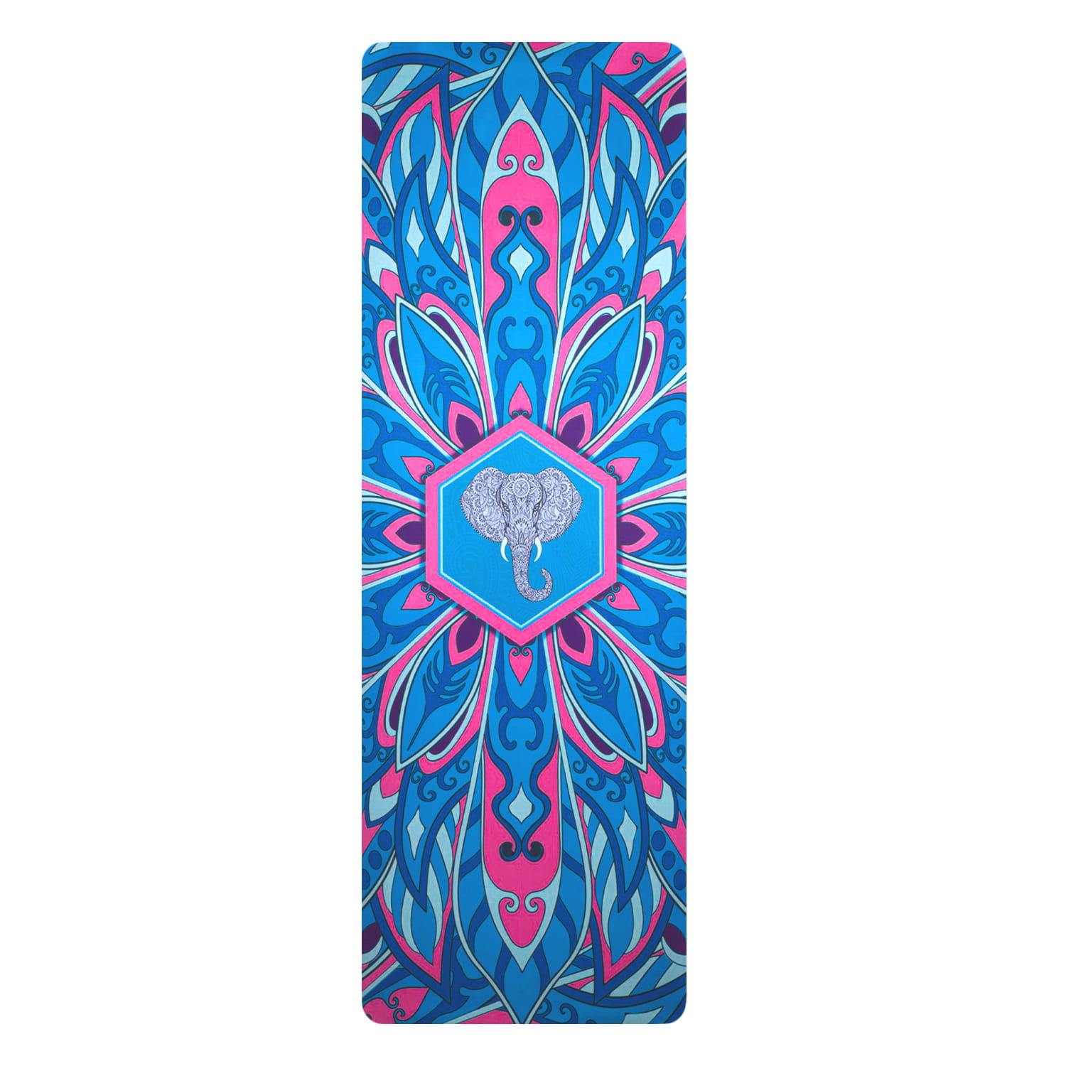 Zamszowa mata do jogi z motywem słonia i niebiesko-różowej mandali jest wyjątkowo przyjemna w dotyku, co czyni ją komfortowym miejscem do praktykowania jogi.