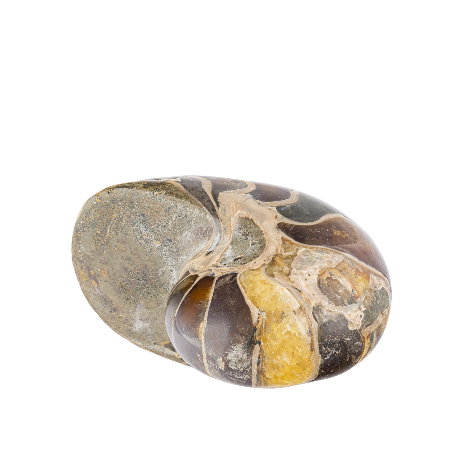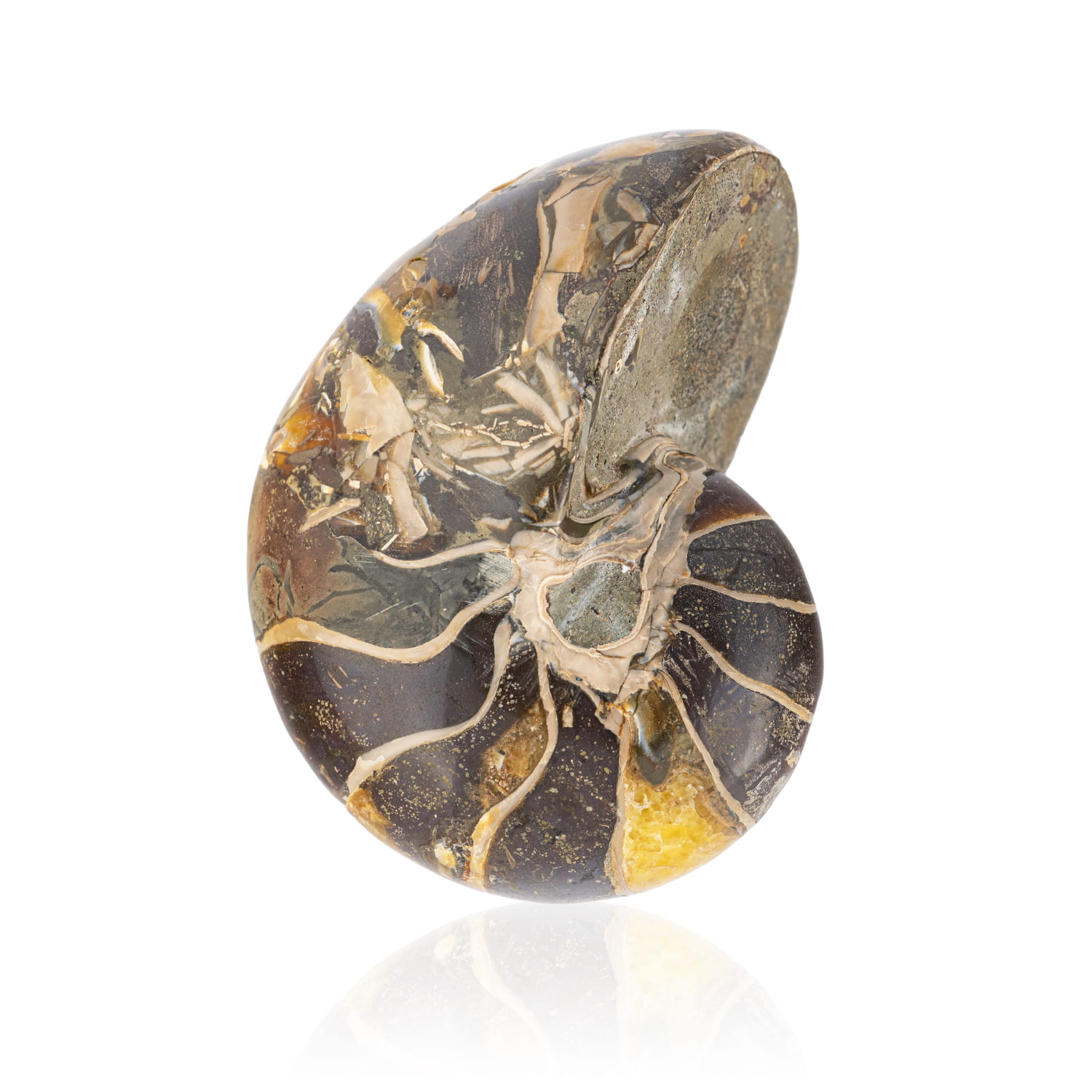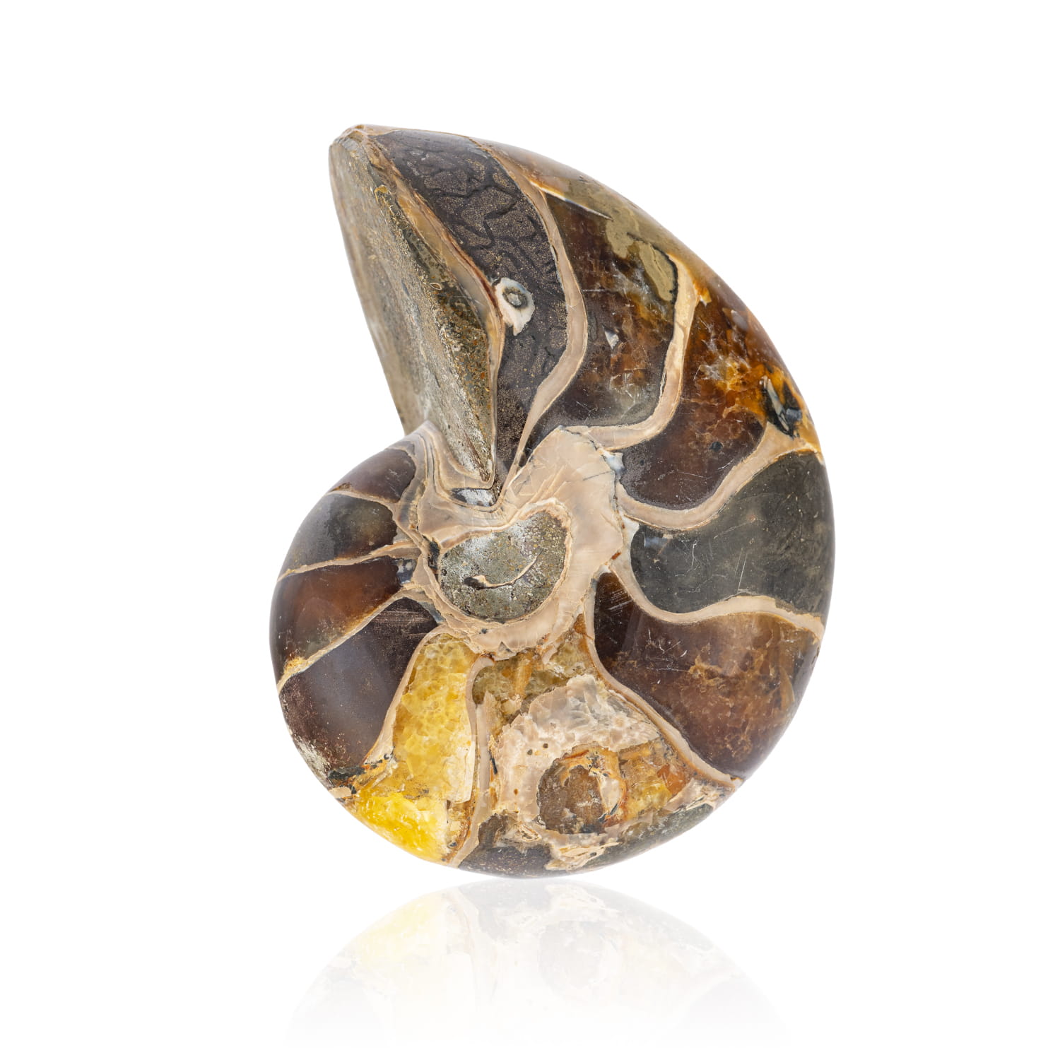 Natomiast polerowany, to znaczy, że wzmocnione są jego walory kontaktu ze wzrokiem. My byśmy to nazwali walorami estetycznymi, ale tutaj nie chodzi o to, czy nam się to podoba bardziej czy mniej, to nie chodzi tutaj o to, że wypolerowanie amonitu wzmacnia jego odbiór wzrokowy na tyle głęboko, że bez żadnej dyskusji, bez żadnego oporu zachwycamy się niezwykłością tego okazu, dzięki czemu wzmocnione jest także działanie.