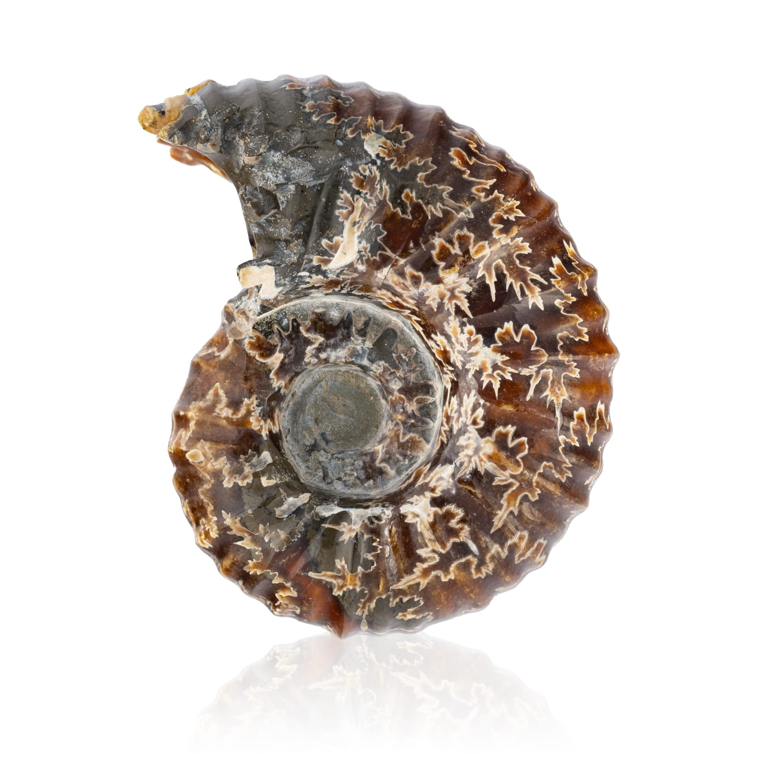 Natomiast polerowany, to znaczy, że wzmocnione są jego walory kontaktu ze wzrokiem. My byśmy to nazwali walorami estetycznymi, ale tutaj nie chodzi o to, czy nam się to podoba bardziej czy mniej, to nie chodzi tutaj o to, że wypolerowanie amonitu wzmacnia jego odbiór wzrokowy na tyle głęboko, że bez żadnej dyskusji, bez żadnego oporu zachwycamy się niezwykłością tego okazu, dzięki czemu wzmocnione jest także działanie.