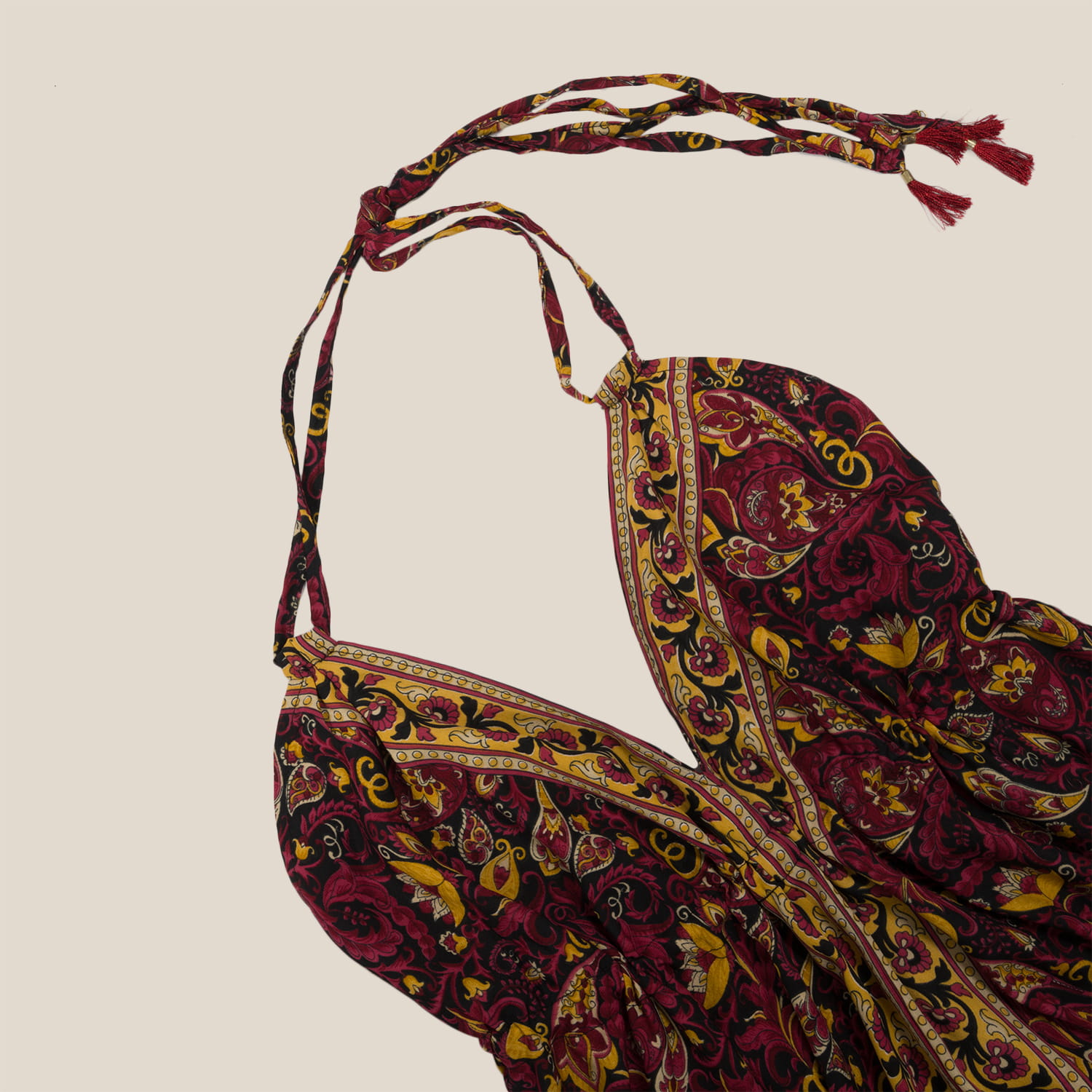 Wymiary: A - 62 cm + długość wiązania 62 cm, B - 45 cm(mierzone na płasko)