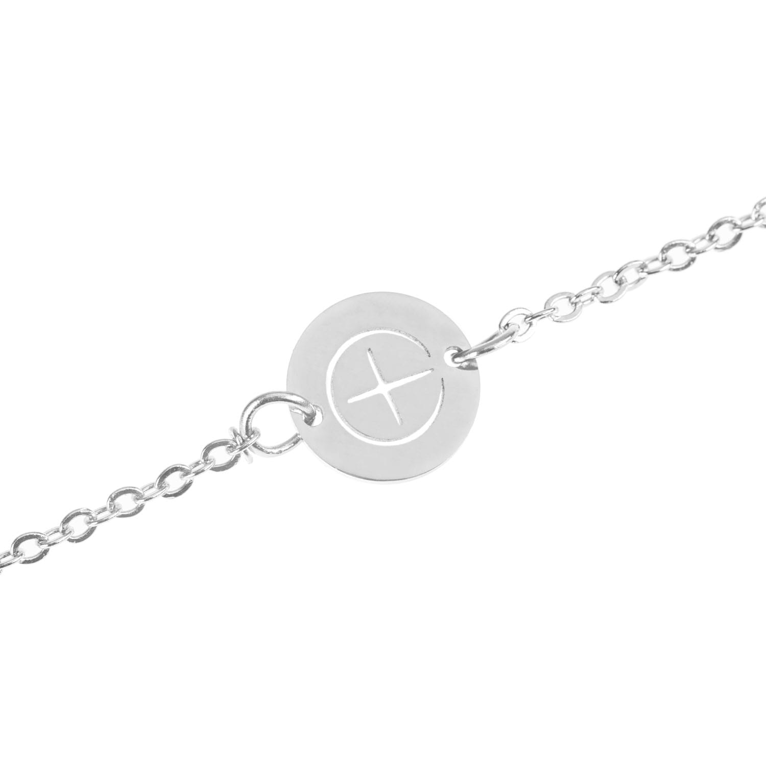 Bransoletka na nogę z okrągłą zawieszką, w którą wkomponowano symbol planety. Wszystkie elementy wykonano ze stali szlachetnej. Dodatkowo łańcuszek posiada możliwość regulowania długości.