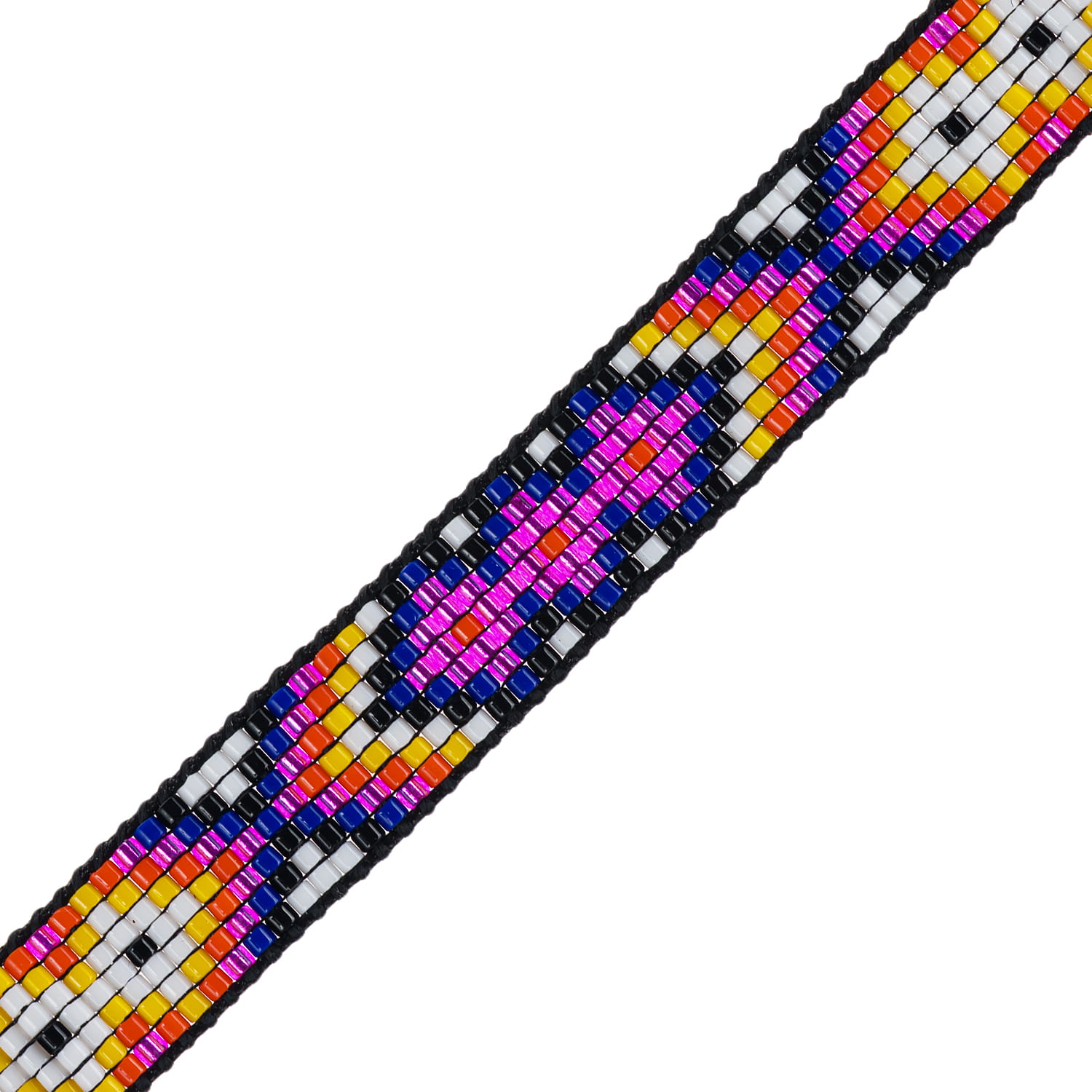 Bransoletka w stylu boho wykonana techniką beadingu z koralików Miyuki ułożonych w geometryczny wzór na sznurku o regulowanej długości. Końce sznurka ozdobione zostały złotymi koralikami.