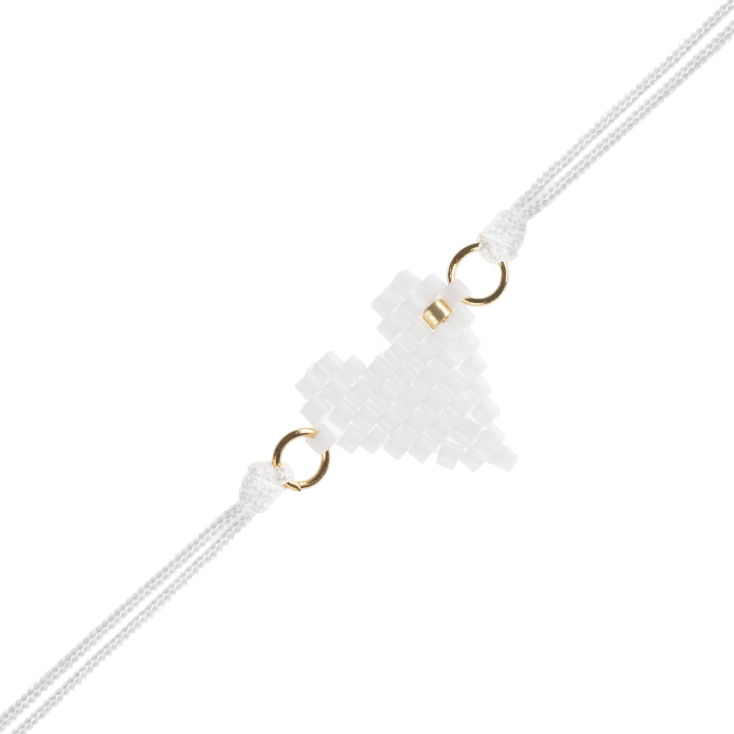 Bransoletka w stylu boho wykonana techniką beadingu z koralików Miyuki ułożonych w geometryczny wzór na sznurku o regulowanej długości. Końce sznurka ozdobione zostały złotymi koralikami.