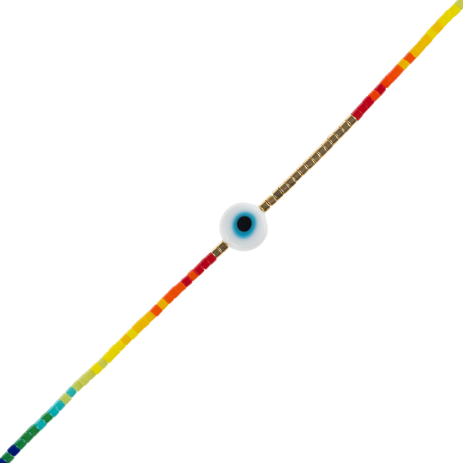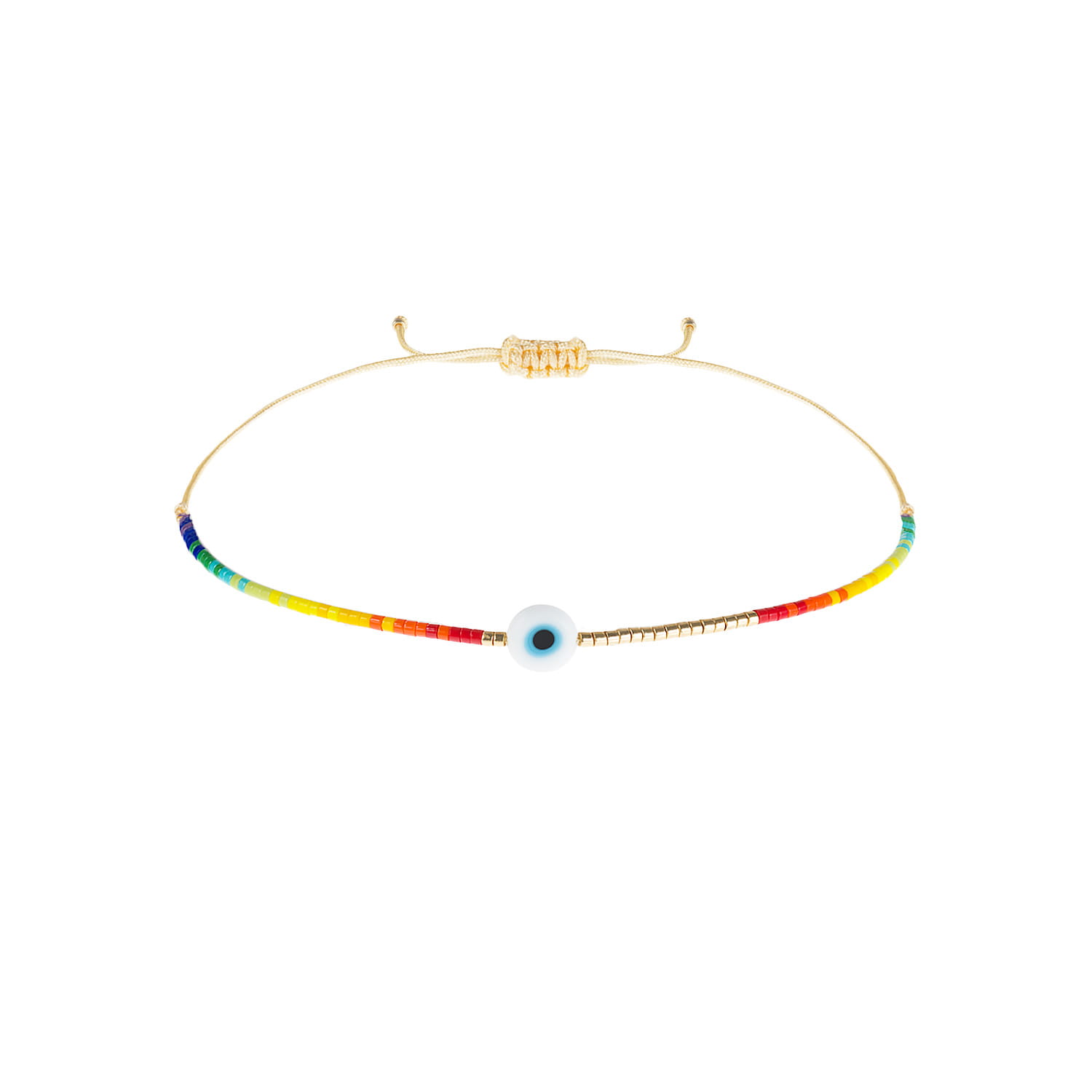Bransoletka pleciona z koralików na sznurku o regulowanej długości.