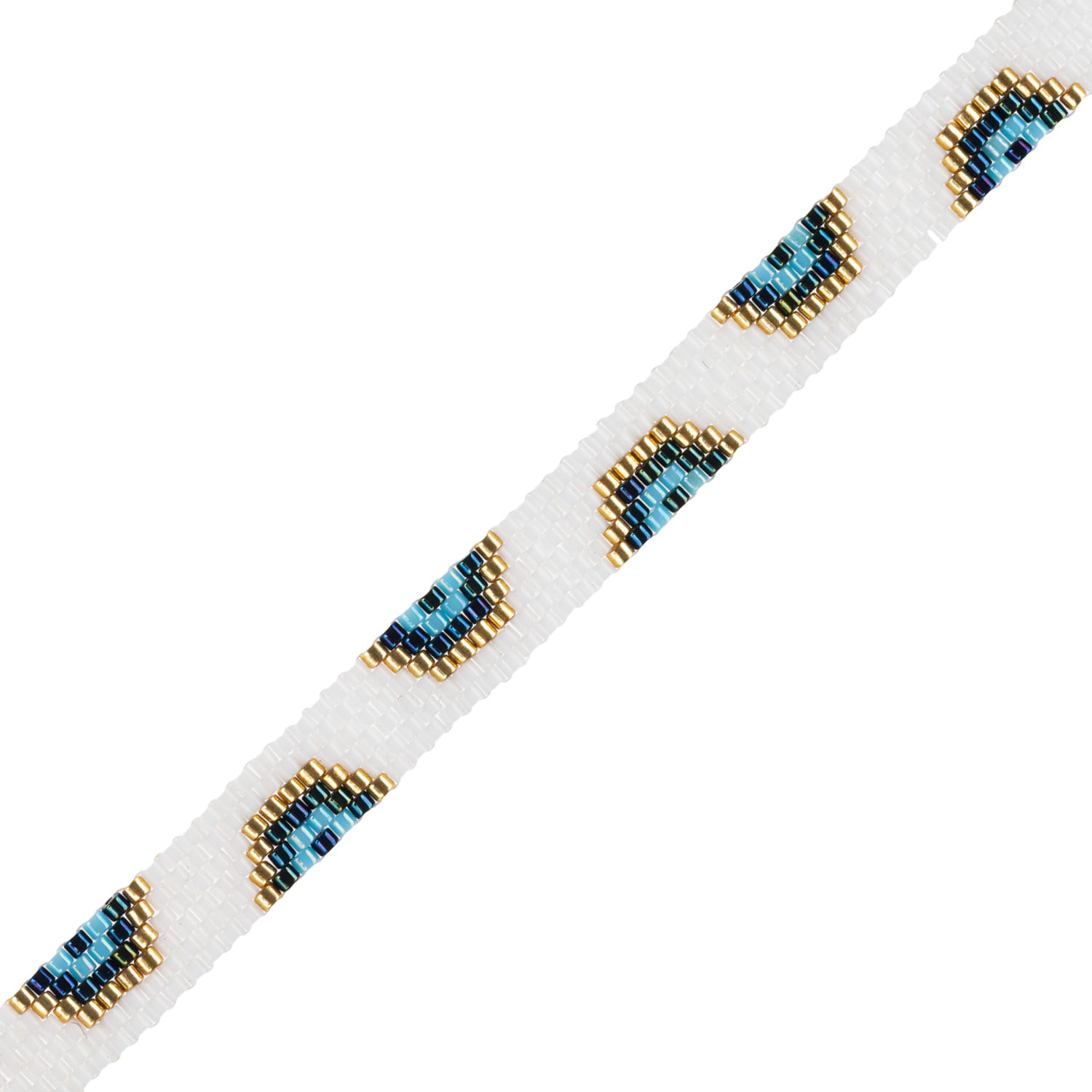 Bransoletka pleciona z koralików Miyuki, idealna dla miłośniczek unikalnych, ręcznie wykonanych ozdób. Jej geometryczny wzór na sznurku przyciąga wzrok, a regulowana długość zapewnia idealne dopasowanie do każdego nadgarstka.