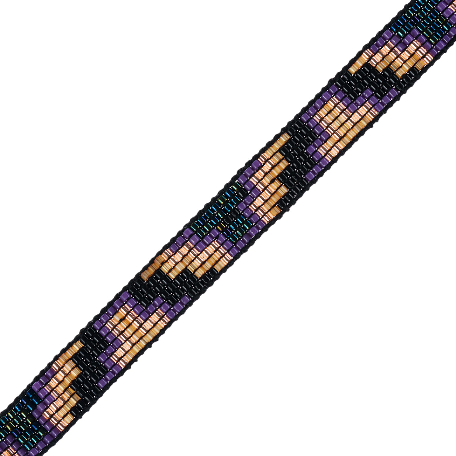 Bransoletka w stylu boho wykonana techniką beadingu z koralików Miyuki ułożonych w geometryczny wzór na sznurku o regulowanej długości. Końce sznurka ozdobione zostały złotymi koralikami.