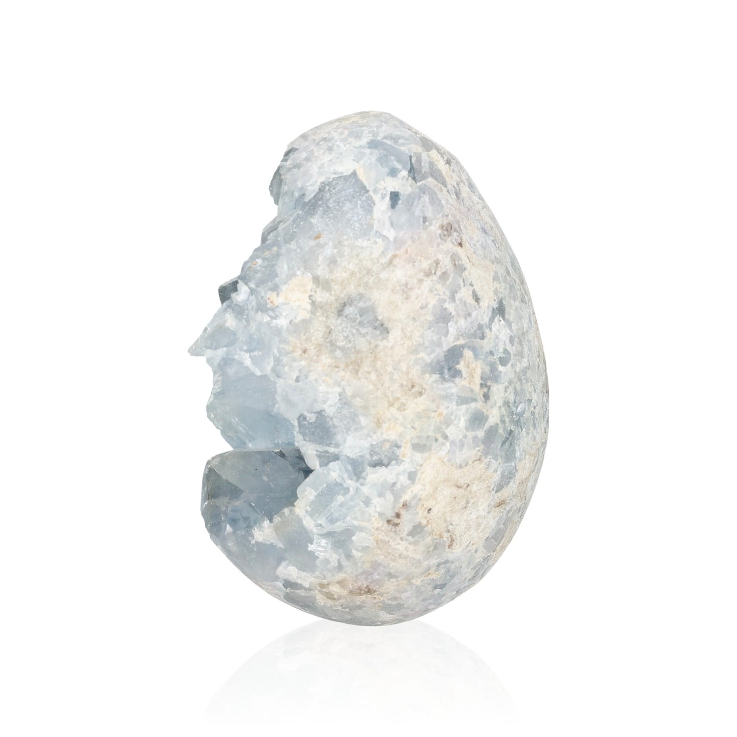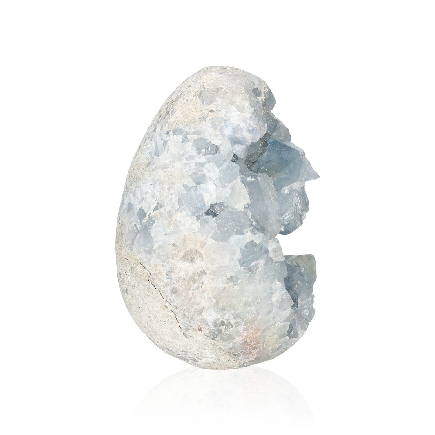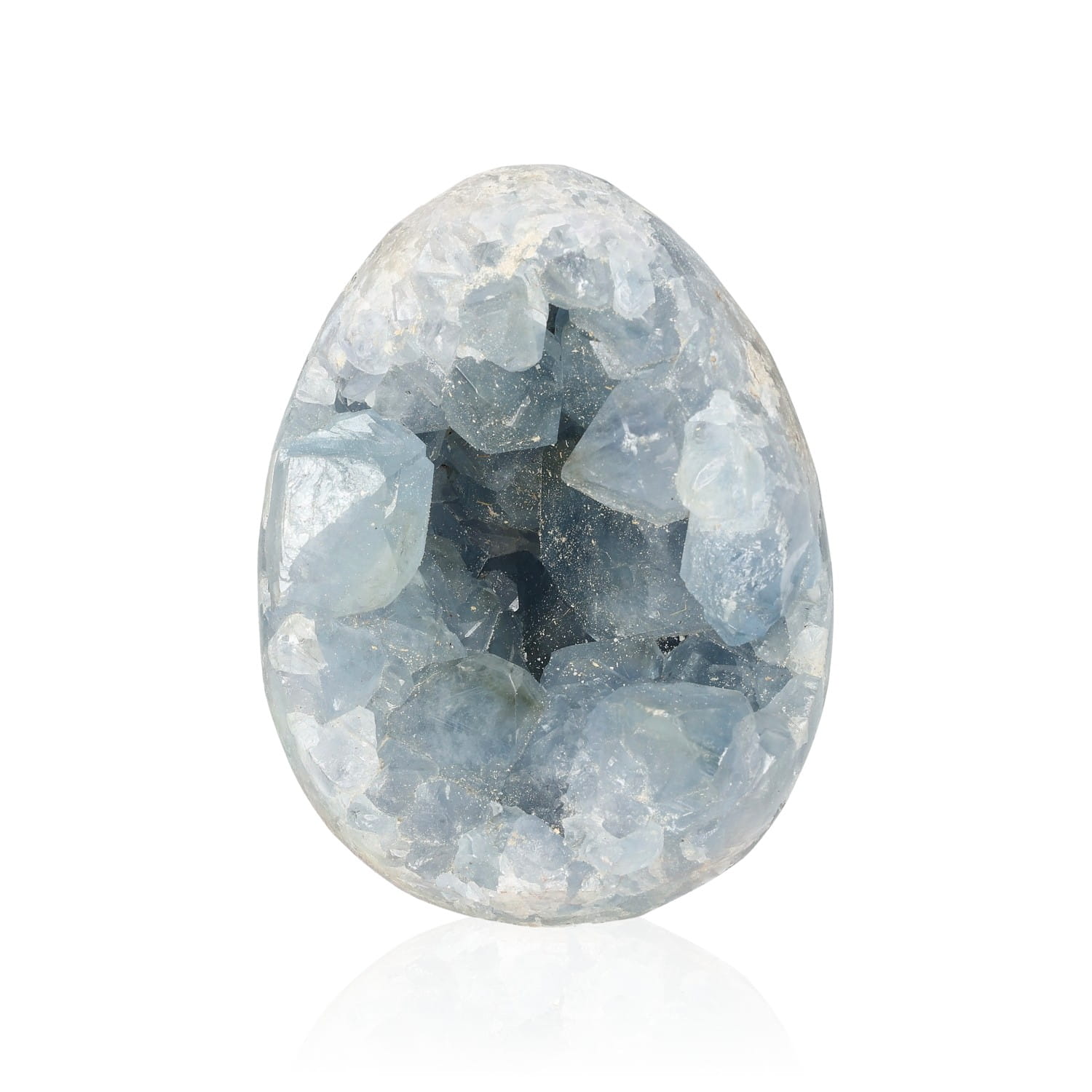 Forma jaja wzmacnia przesłanie celestynu – to symbol początku, duchowego narodzenia i delikatnej siły życia. Jajo celestynowe działa jak duchowy inkubator – wspiera rodzenie się w nas nowej przestrzeni, nowego sposobu odczuwania i widzenia. Kształt ten chroni, otula i daje bezpieczne miejsce na rozwój tego, co jeszcze niewidoczne, ale już obecne. To doskonała forma do pracy z intencją i medytacją – wspomaga skupienie, transformację i harmonijną zmianę.