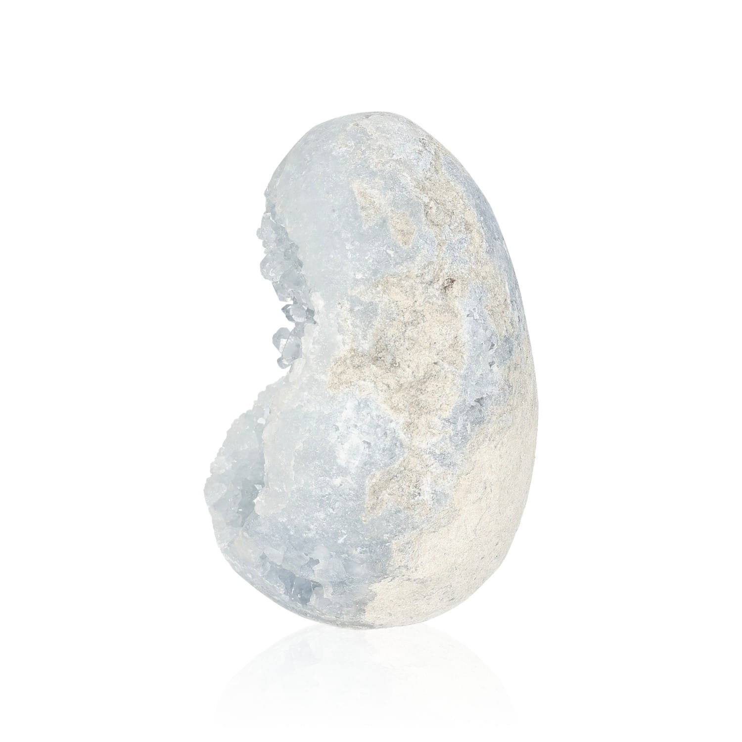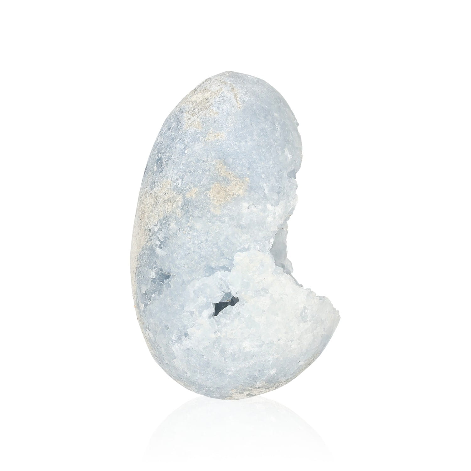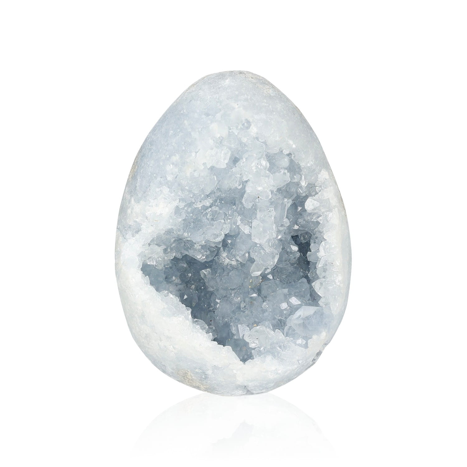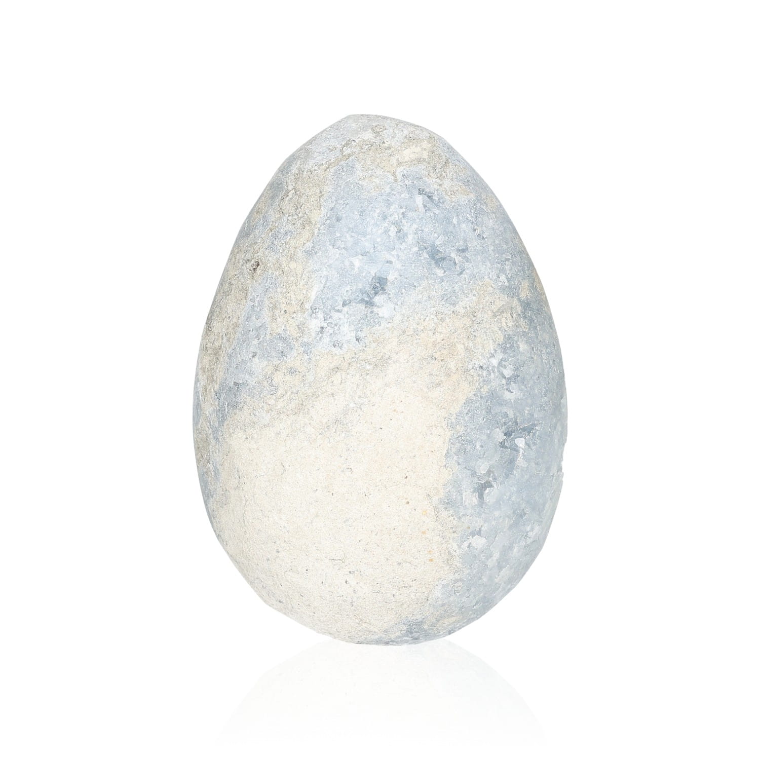 Forma jaja wzmacnia przesłanie celestynu – to symbol początku, duchowego narodzenia i delikatnej siły życia. Jajo celestynowe działa jak duchowy inkubator – wspiera rodzenie się w nas nowej przestrzeni, nowego sposobu odczuwania i widzenia. Kształt ten chroni, otula i daje bezpieczne miejsce na rozwój tego, co jeszcze niewidoczne, ale już obecne. To doskonała forma do pracy z intencją i medytacją – wspomaga skupienie, transformację i harmonijną zmianę.