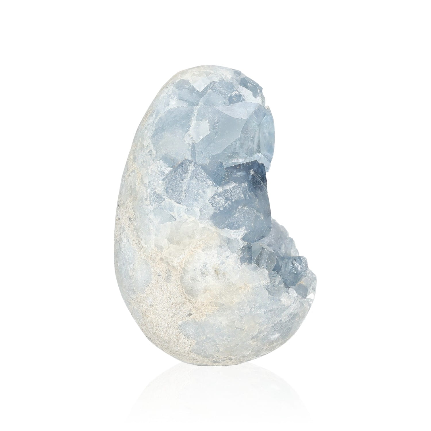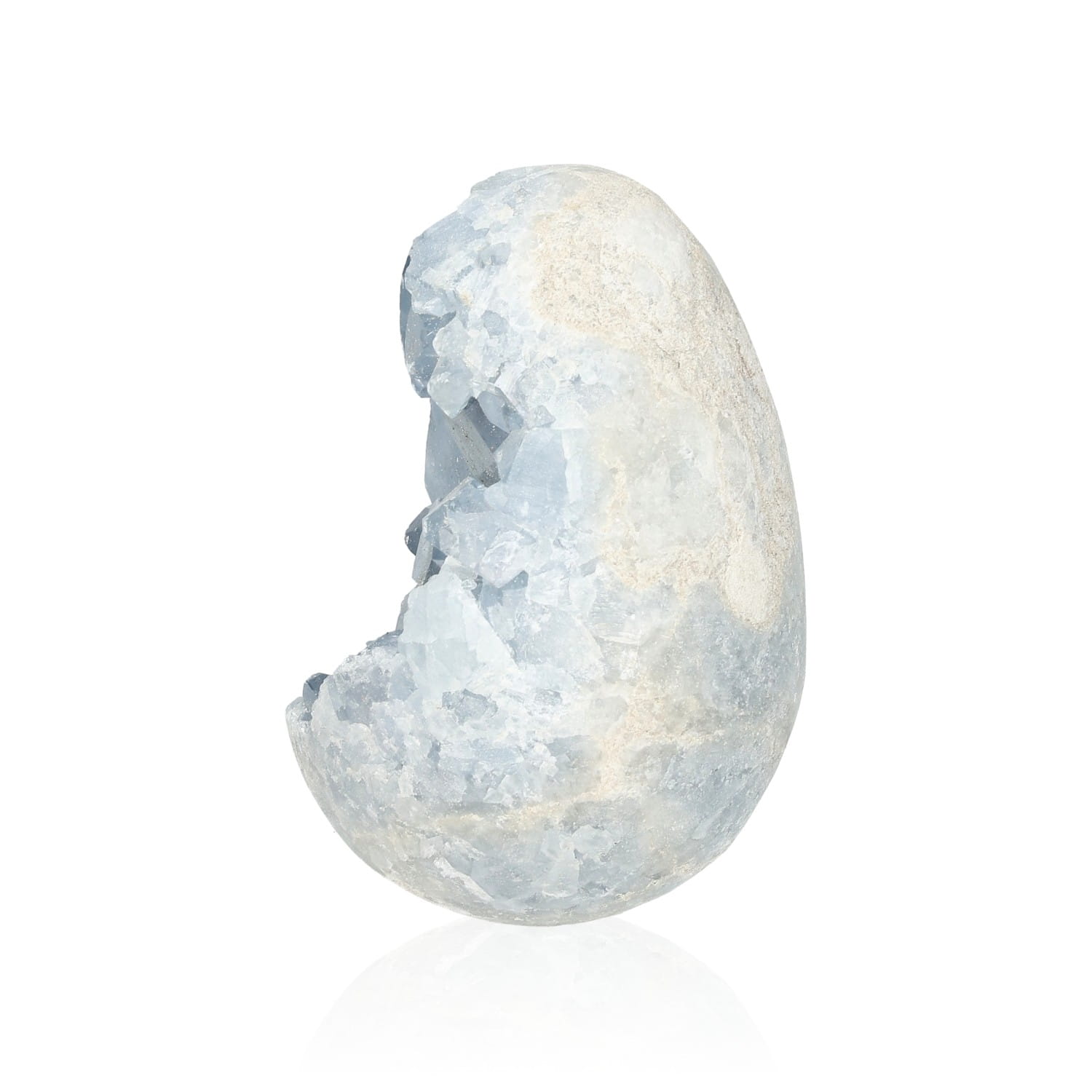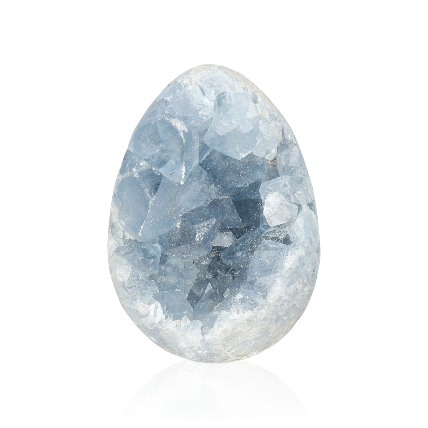 Forma jaja wzmacnia przesłanie celestynu – to symbol początku, duchowego narodzenia i delikatnej siły życia. Jajo celestynowe działa jak duchowy inkubator – wspiera rodzenie się w nas nowej przestrzeni, nowego sposobu odczuwania i widzenia. Kształt ten chroni, otula i daje bezpieczne miejsce na rozwój tego, co jeszcze niewidoczne, ale już obecne. To doskonała forma do pracy z intencją i medytacją – wspomaga skupienie, transformację i harmonijną zmianę.