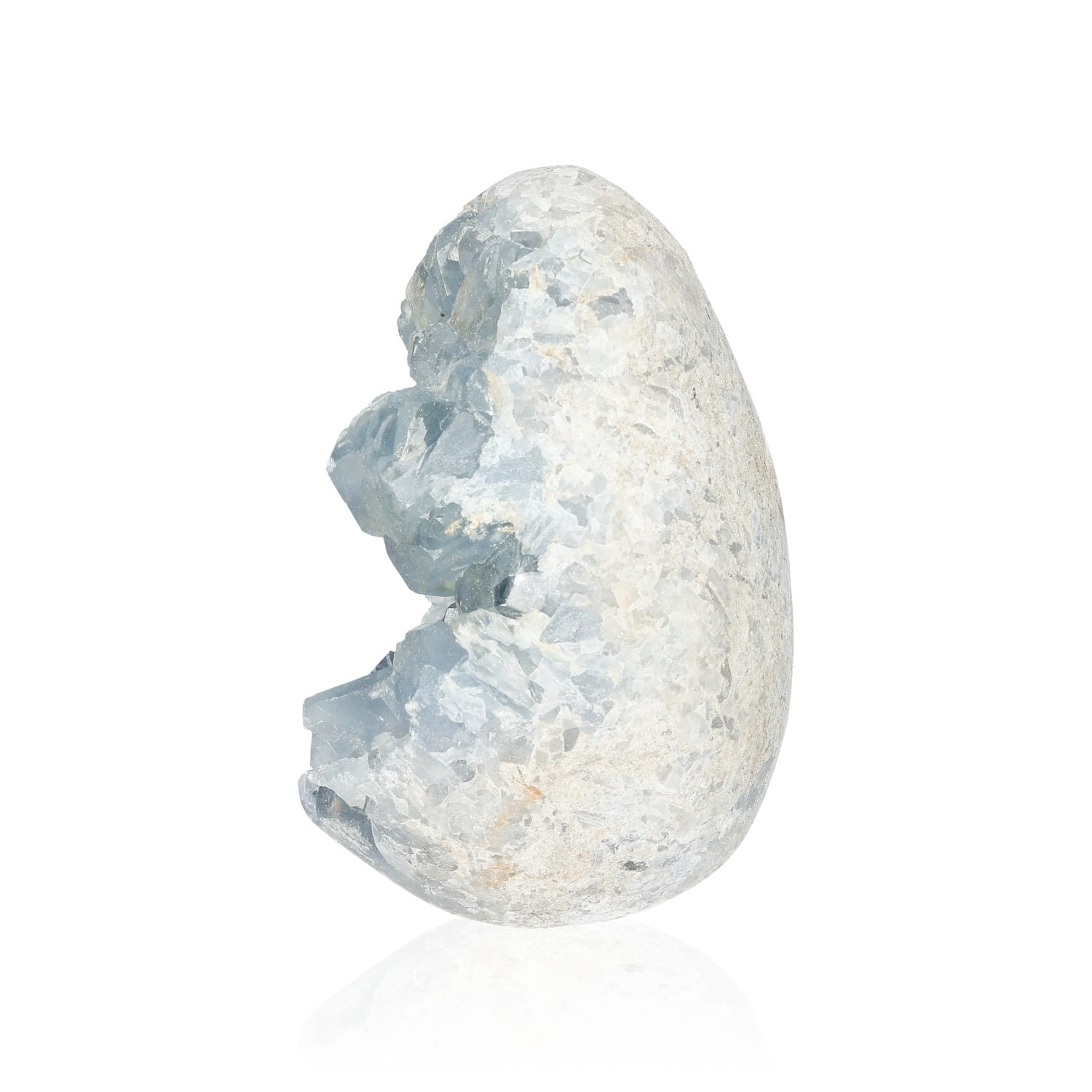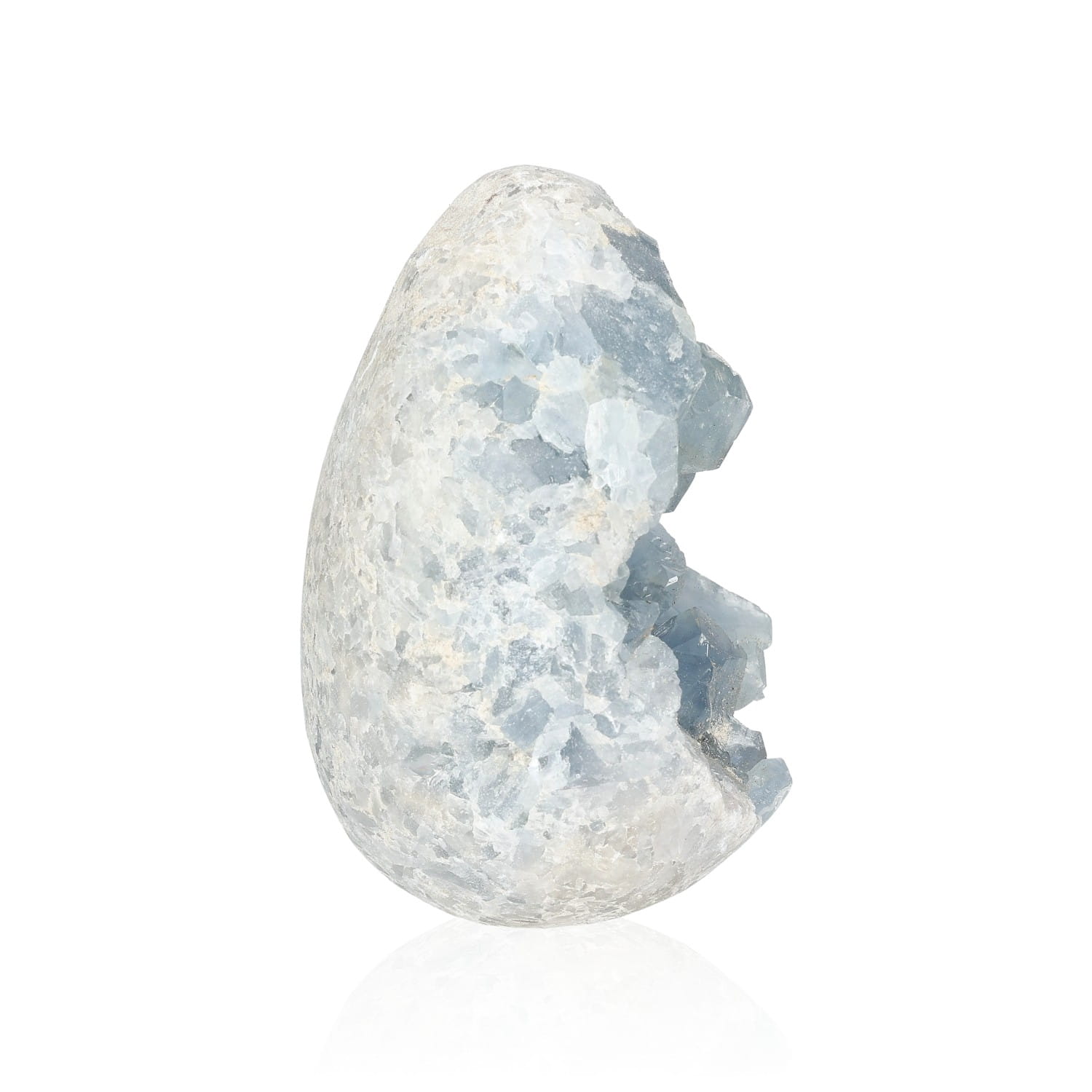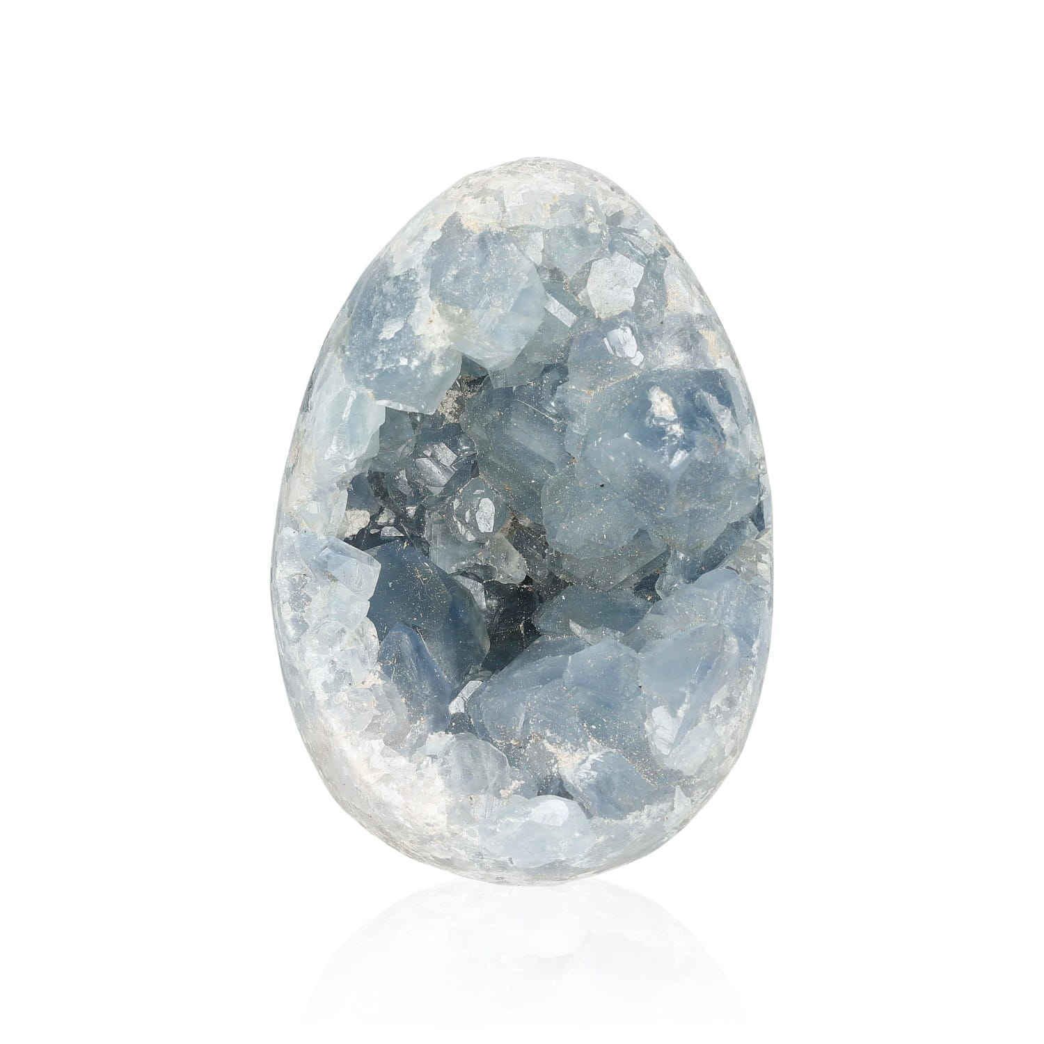 Forma jaja wzmacnia przesłanie celestynu – to symbol początku, duchowego narodzenia i delikatnej siły życia. Jajo celestynowe działa jak duchowy inkubator – wspiera rodzenie się w nas nowej przestrzeni, nowego sposobu odczuwania i widzenia. Kształt ten chroni, otula i daje bezpieczne miejsce na rozwój tego, co jeszcze niewidoczne, ale już obecne. To doskonała forma do pracy z intencją i medytacją – wspomaga skupienie, transformację i harmonijną zmianę.