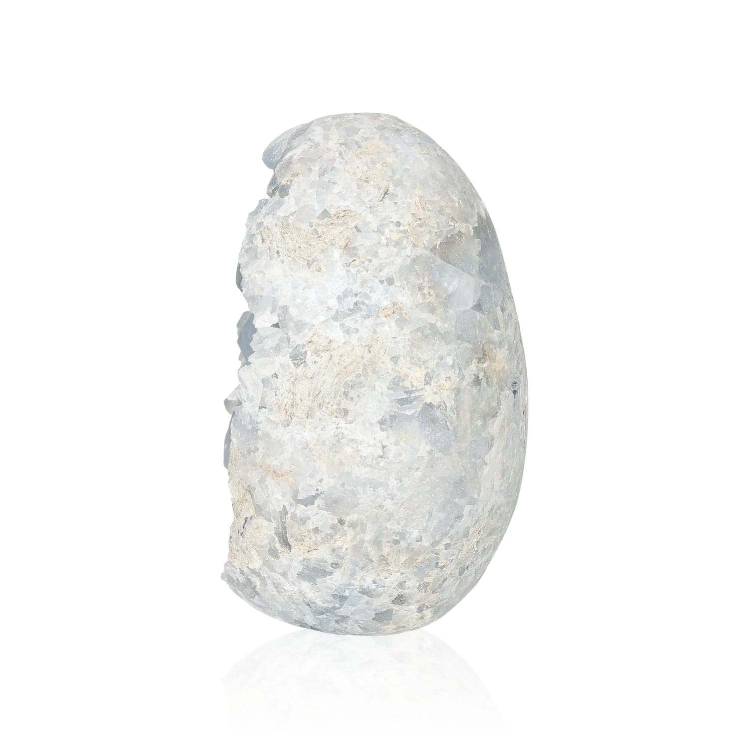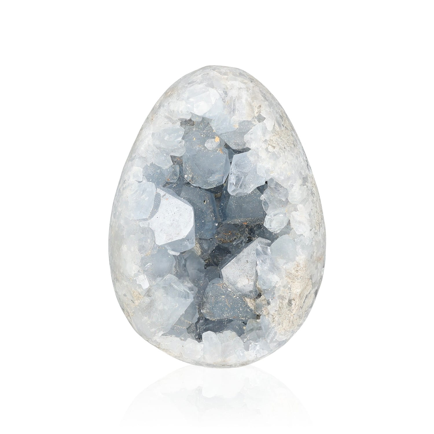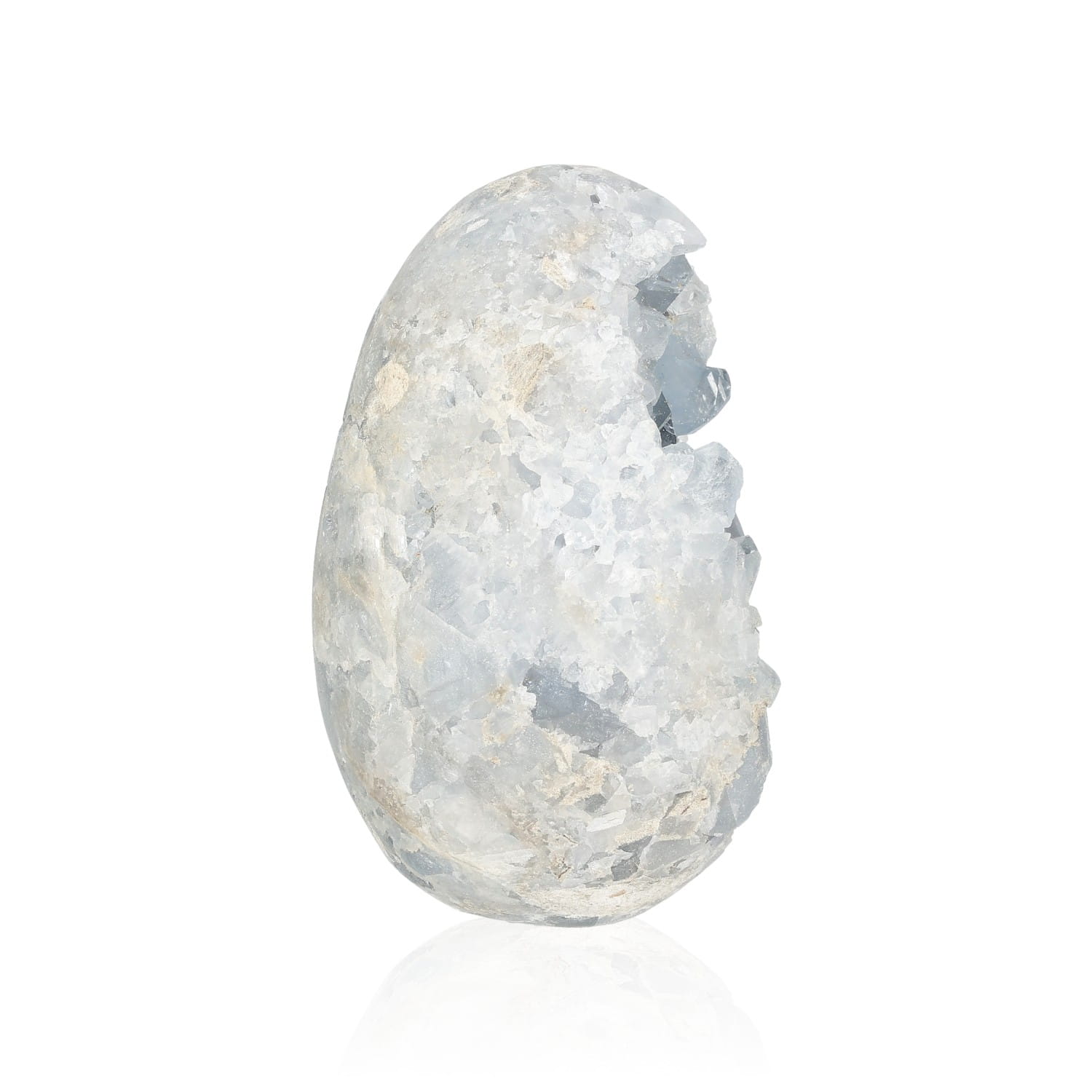 Forma jaja wzmacnia przesłanie celestynu – to symbol początku, duchowego narodzenia i delikatnej siły życia. Jajo celestynowe działa jak duchowy inkubator – wspiera rodzenie się w nas nowej przestrzeni, nowego sposobu odczuwania i widzenia. Kształt ten chroni, otula i daje bezpieczne miejsce na rozwój tego, co jeszcze niewidoczne, ale już obecne. To doskonała forma do pracy z intencją i medytacją – wspomaga skupienie, transformację i harmonijną zmianę.