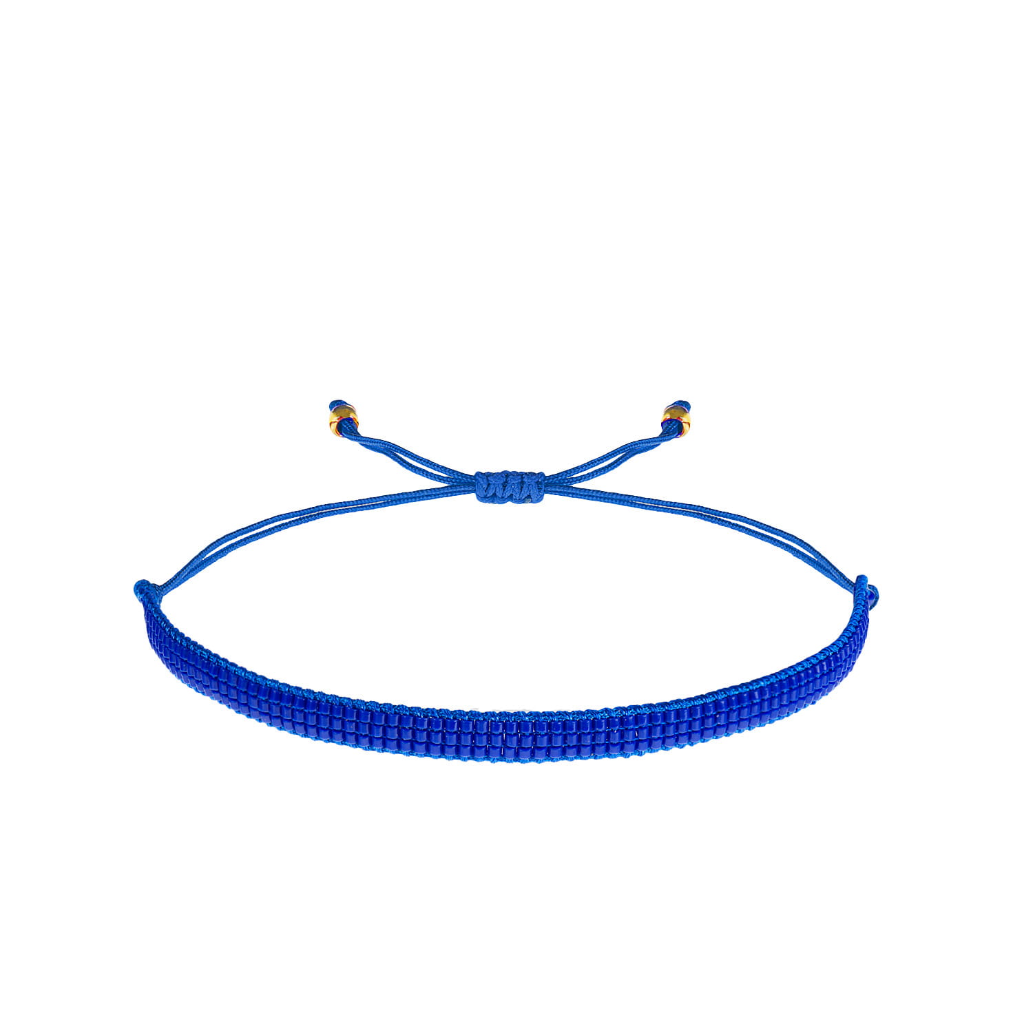 Bransoletka w stylu boho wykonana techniką beadingu z koralików Miyuki ułożonych w geometryczny wzór na sznurku o regulowanej długości. Końce sznurka ozdobione zostały złotymi koralikami.