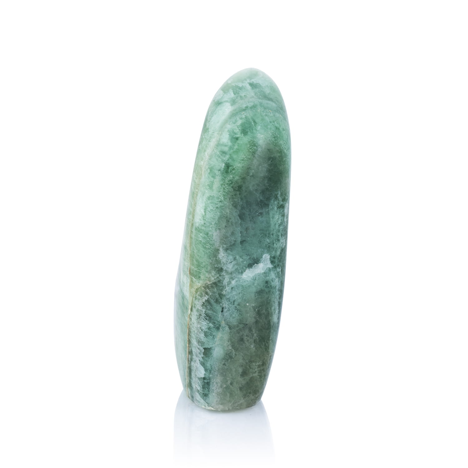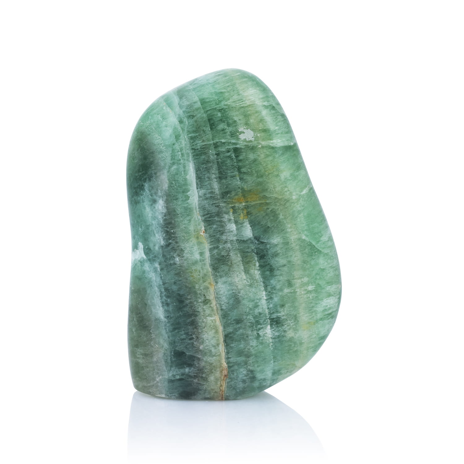 W wersji freeform, czyli w formie kamienia o nieregularnym kształcie, fluoryt często bywa używany jako element dekoracyjny lub medytacyjny, który przyciąga pozytywną energię, wspiera introspekcję i daje poczucie harmonii.