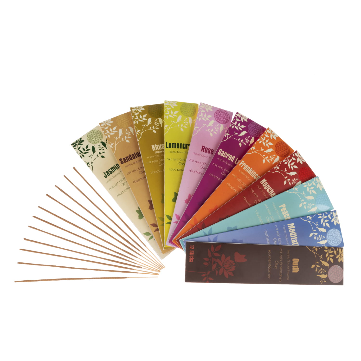 Ostrzeżenia: Kadzidełka używaj tylko do okadzania pomieszczeń, unikaj kontaktu z ciałem lub ubraniem. Zawsze stawiaj z dala od łatwopalnych przedmiotów i materiałów. Nie pozostawiaj zapalonych patyczków zapachowych bez nadzoru. Upewnij się, że popiół spada na podstawkę. Przechowuj w miejscu niedostępnym dla dzieci i zwierząt.