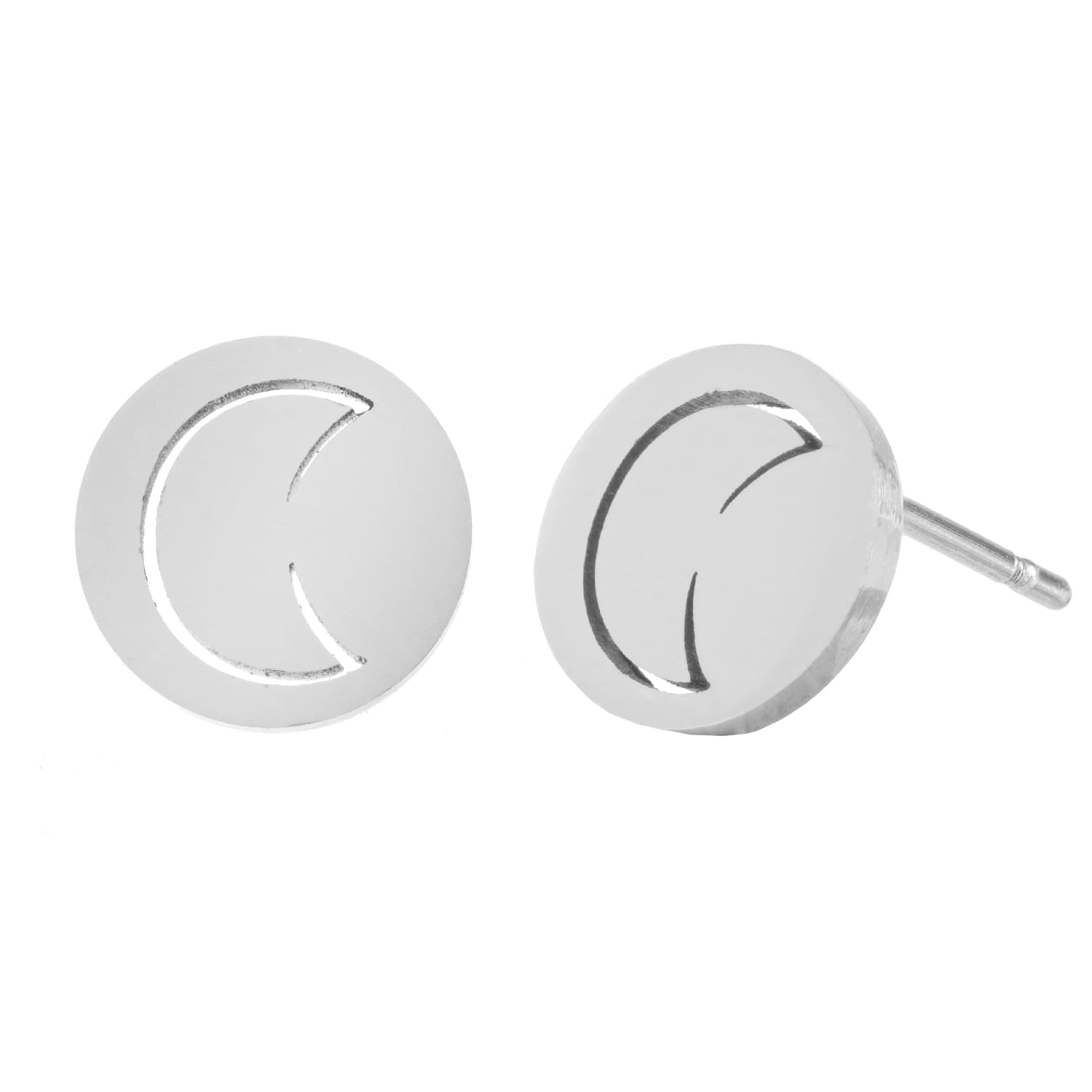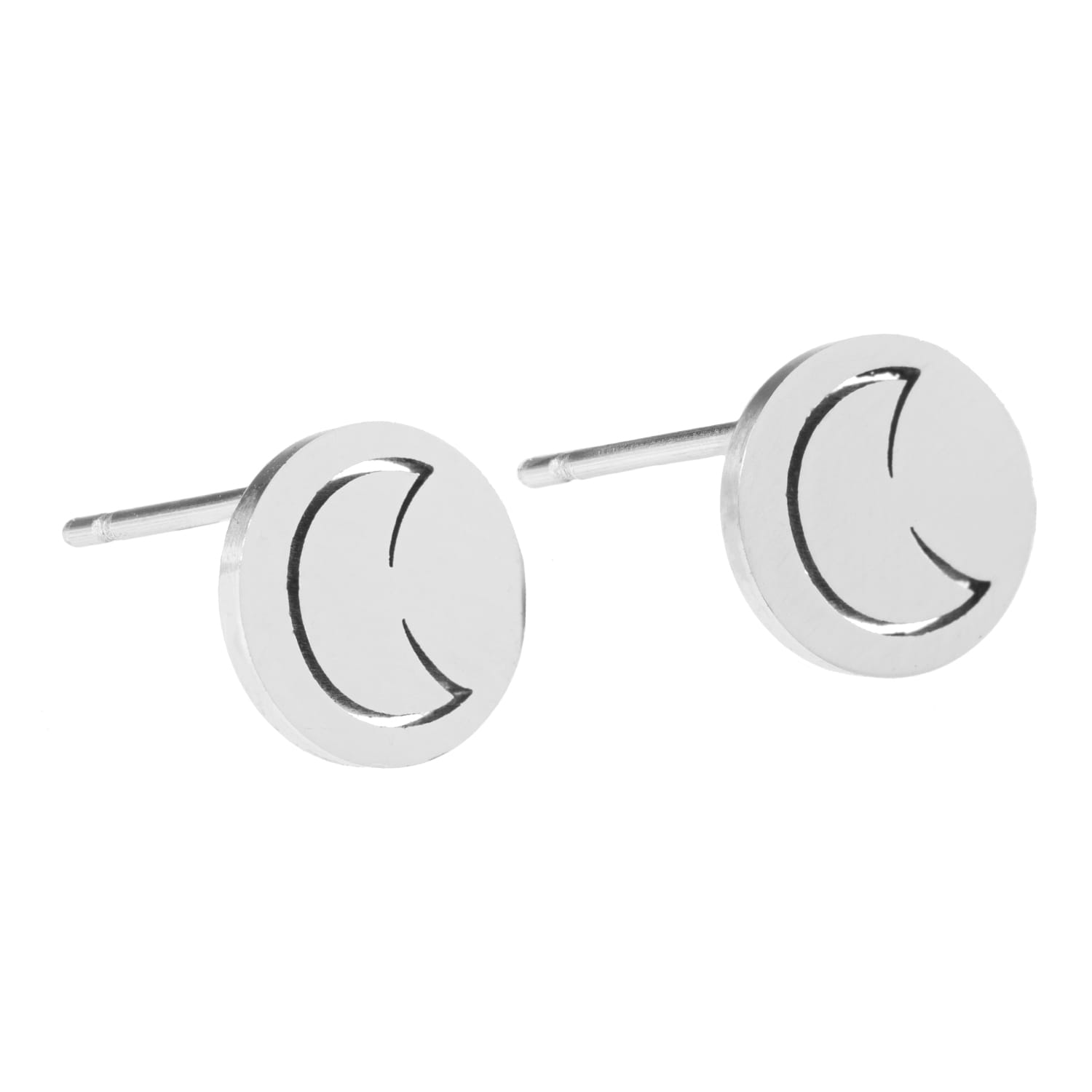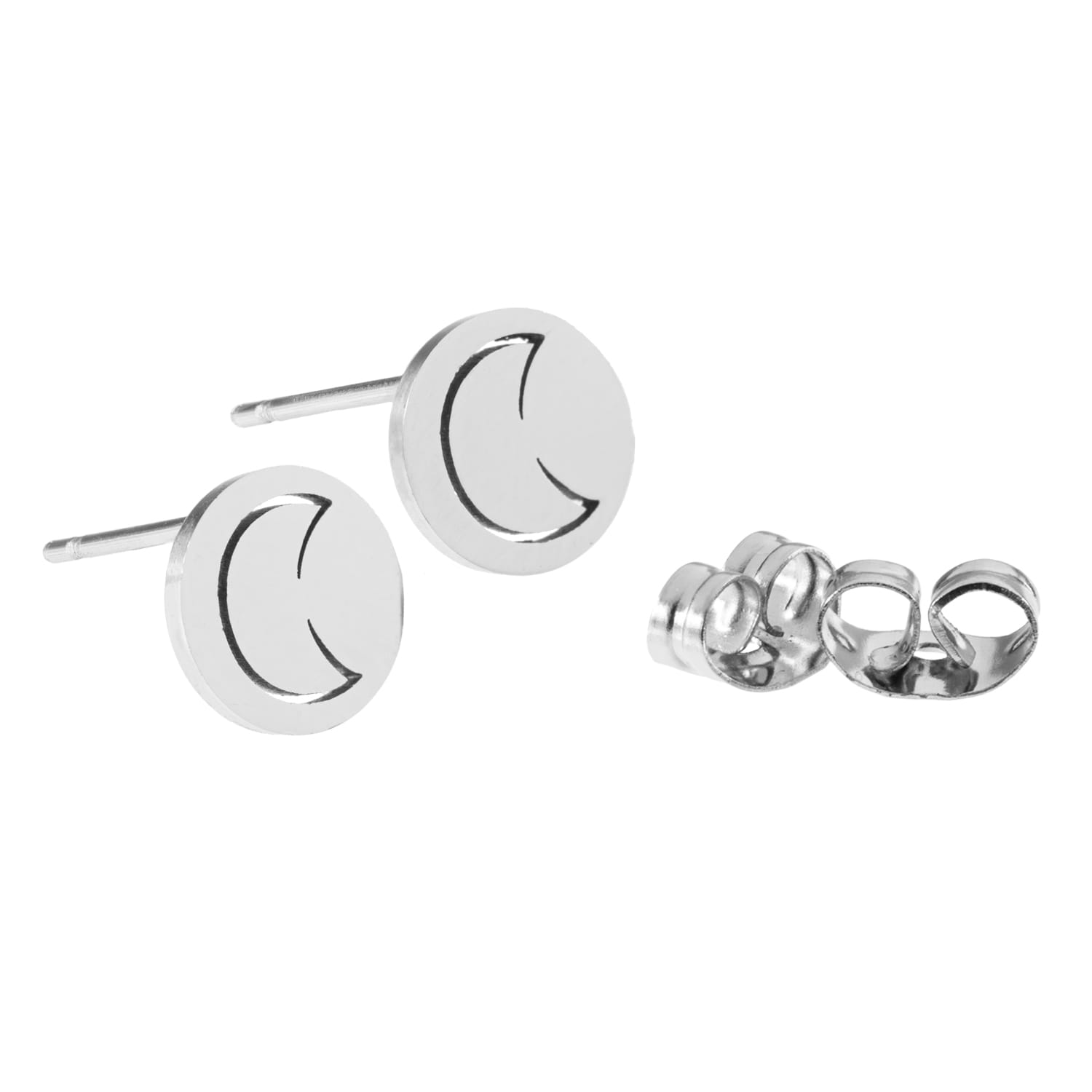Kolczyki wykonane ze stali szlachetnej z symbolem planety Księżyc posiadające zapięcie typu sztyft