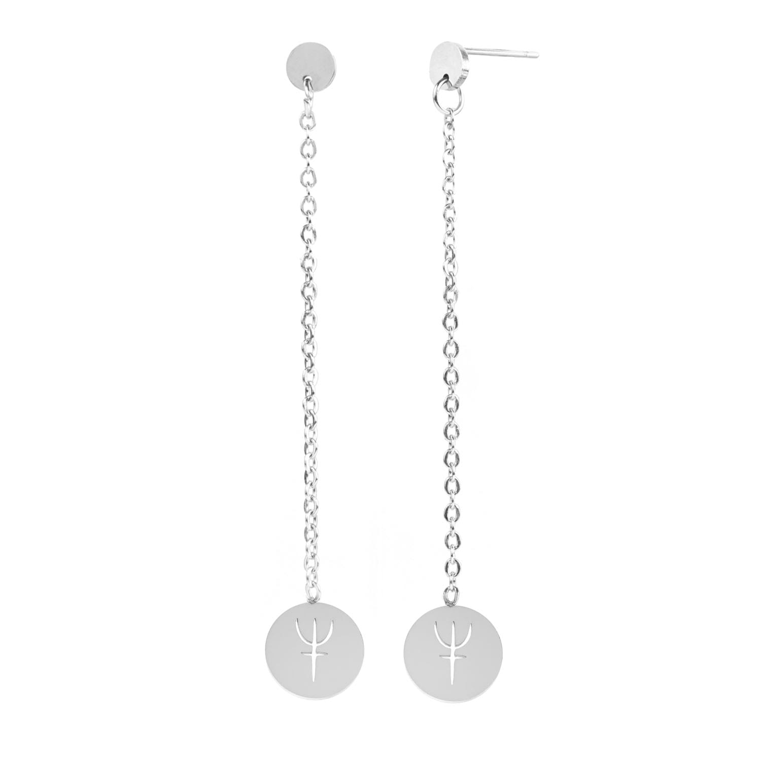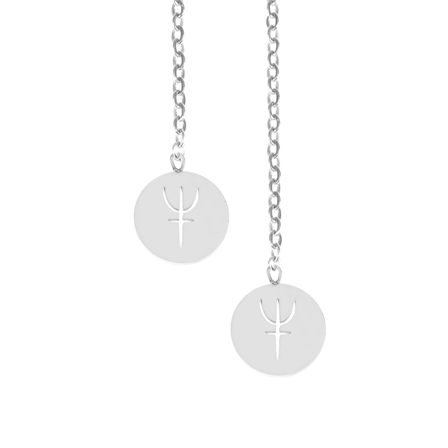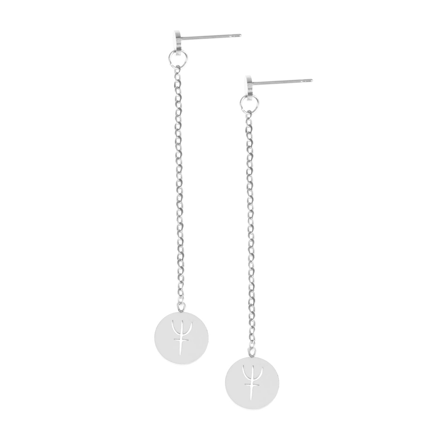 Kolczyki na łańcuszku wykonane ze stali szlachetnej z symbolem planety Neptun