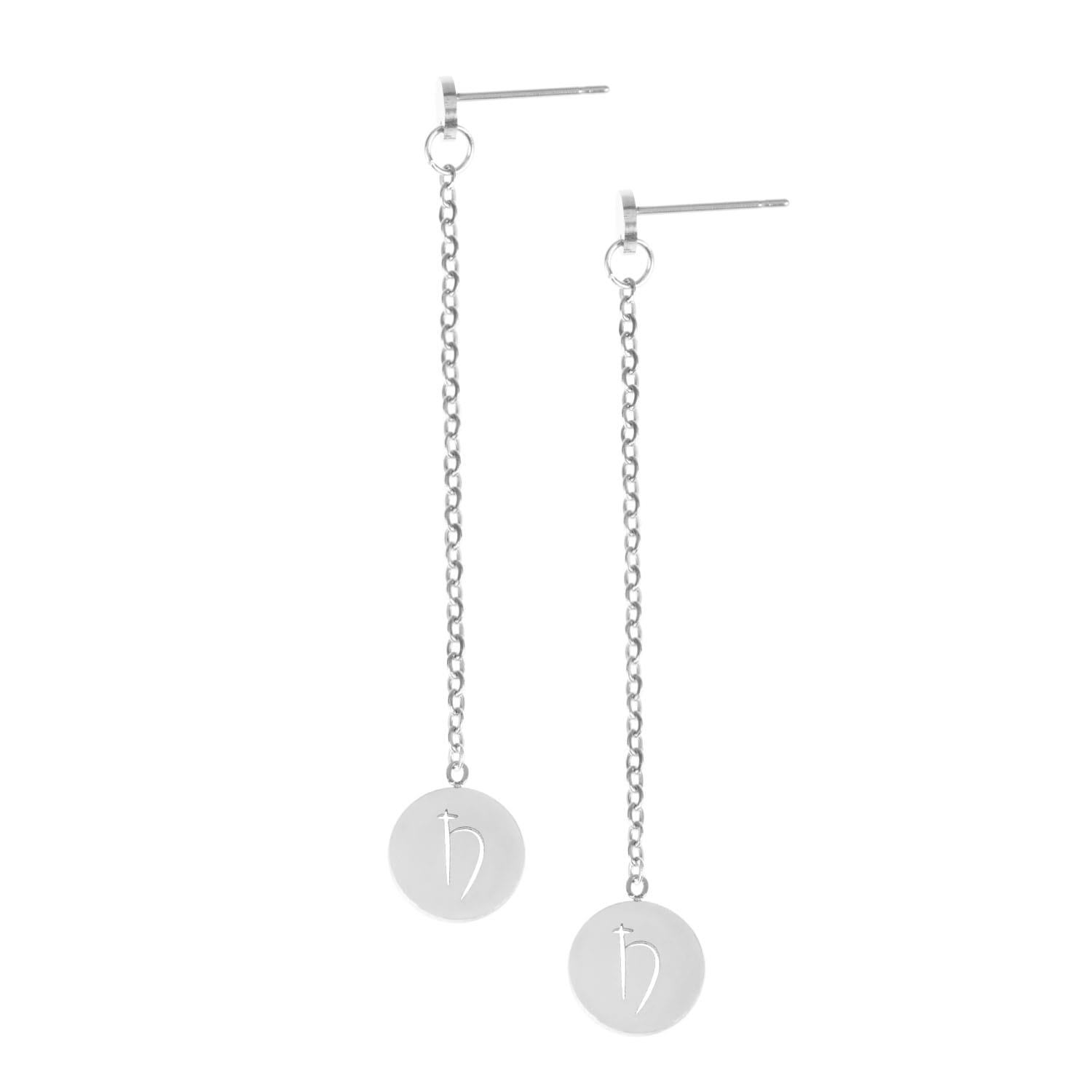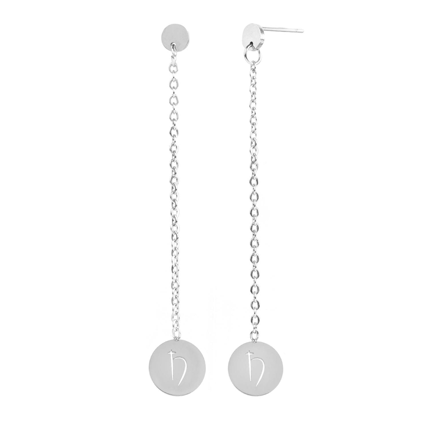 Nietuzinkowe kolczyki na łańcuszku, na którym umieszczono zawieszkę z symbolem planety. Całości dopełniają ozdobne kółeczka przy zapięciu typu sztyft. Wszystkie elementy zostały wykonane ze stali szlachetnej.