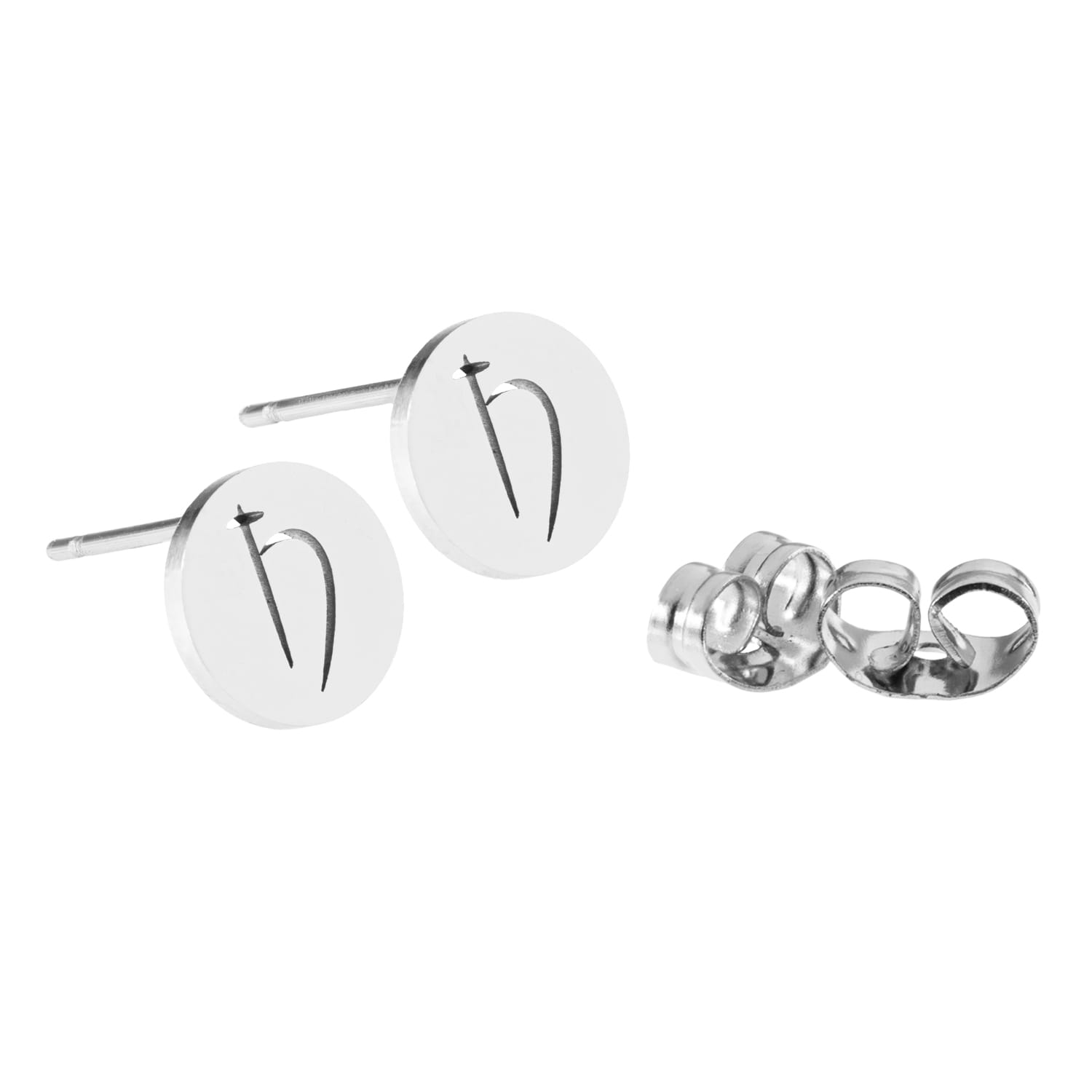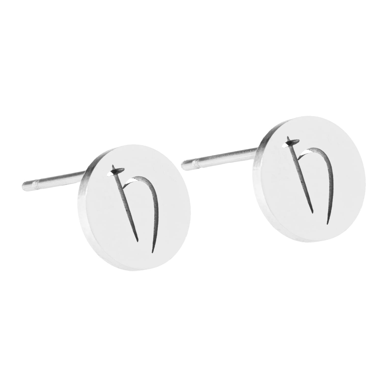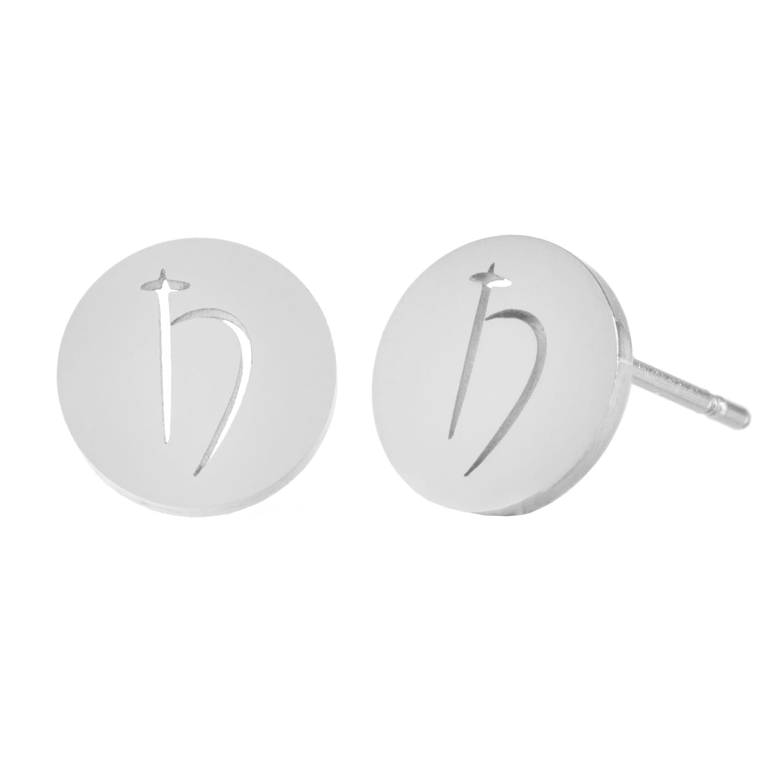 Nietuzinkowe kolczyki na sztyfcie z okrągłym medalikiem z symbolem planety. Wszystkie elementy zostały wykonane ze stali szlachetnej.