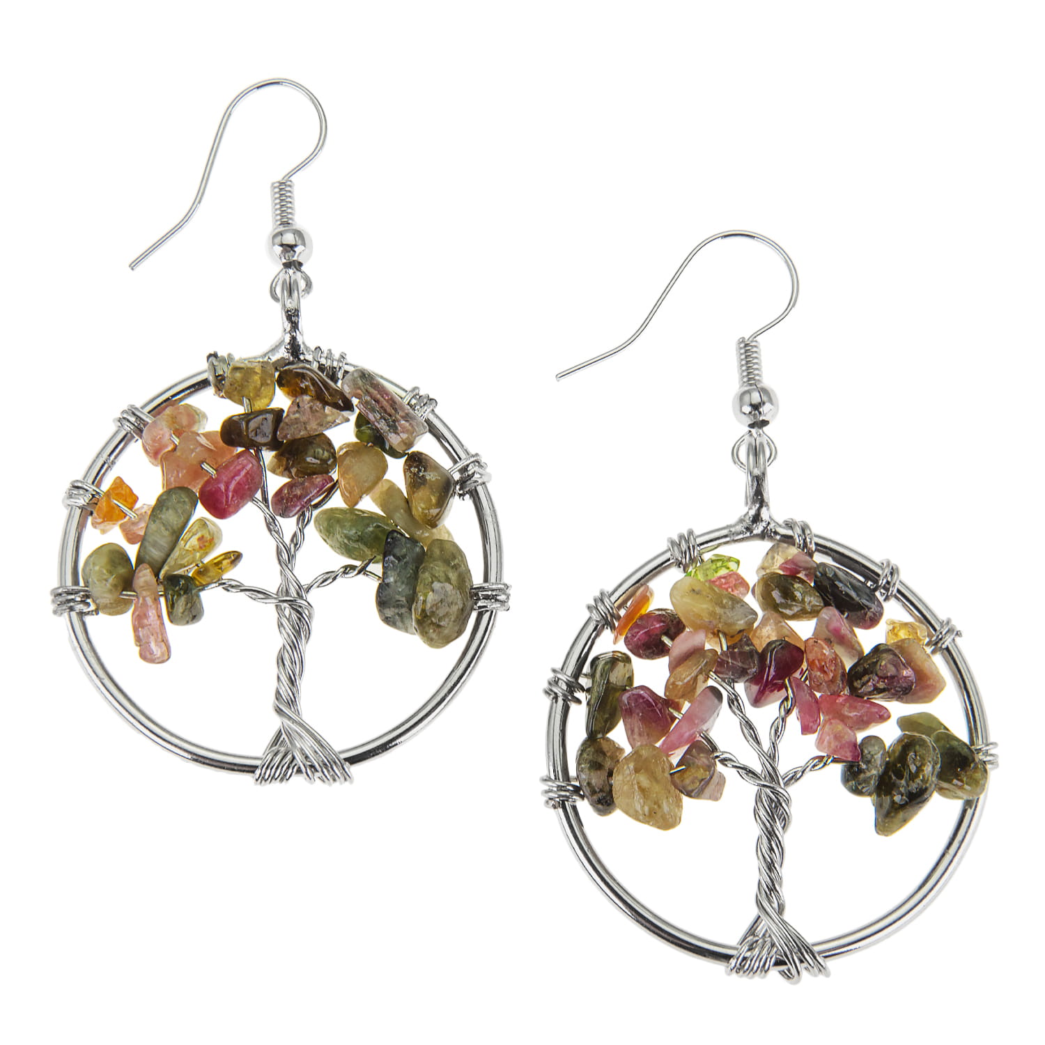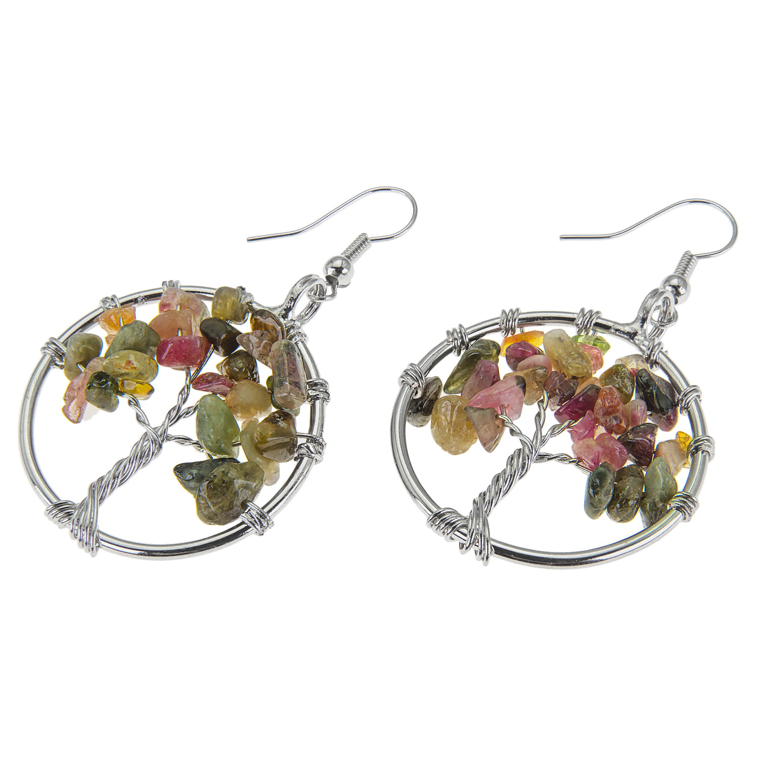 Kolczyki z ręcznie plecionym Drzewem Życia wykonane ze stali szlachetnej i kamieni naturalnych.