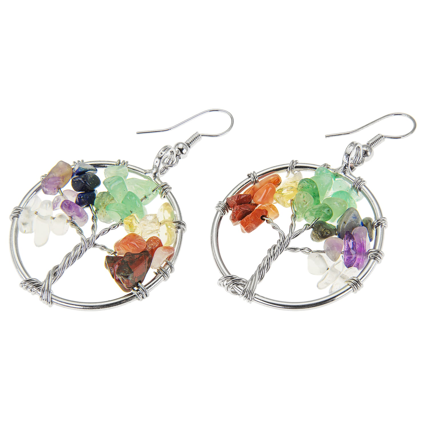 Kolczyki z ręcznie plecionym Drzewem Życia wykonane ze stali szlachetnej i kamieni naturalnych.