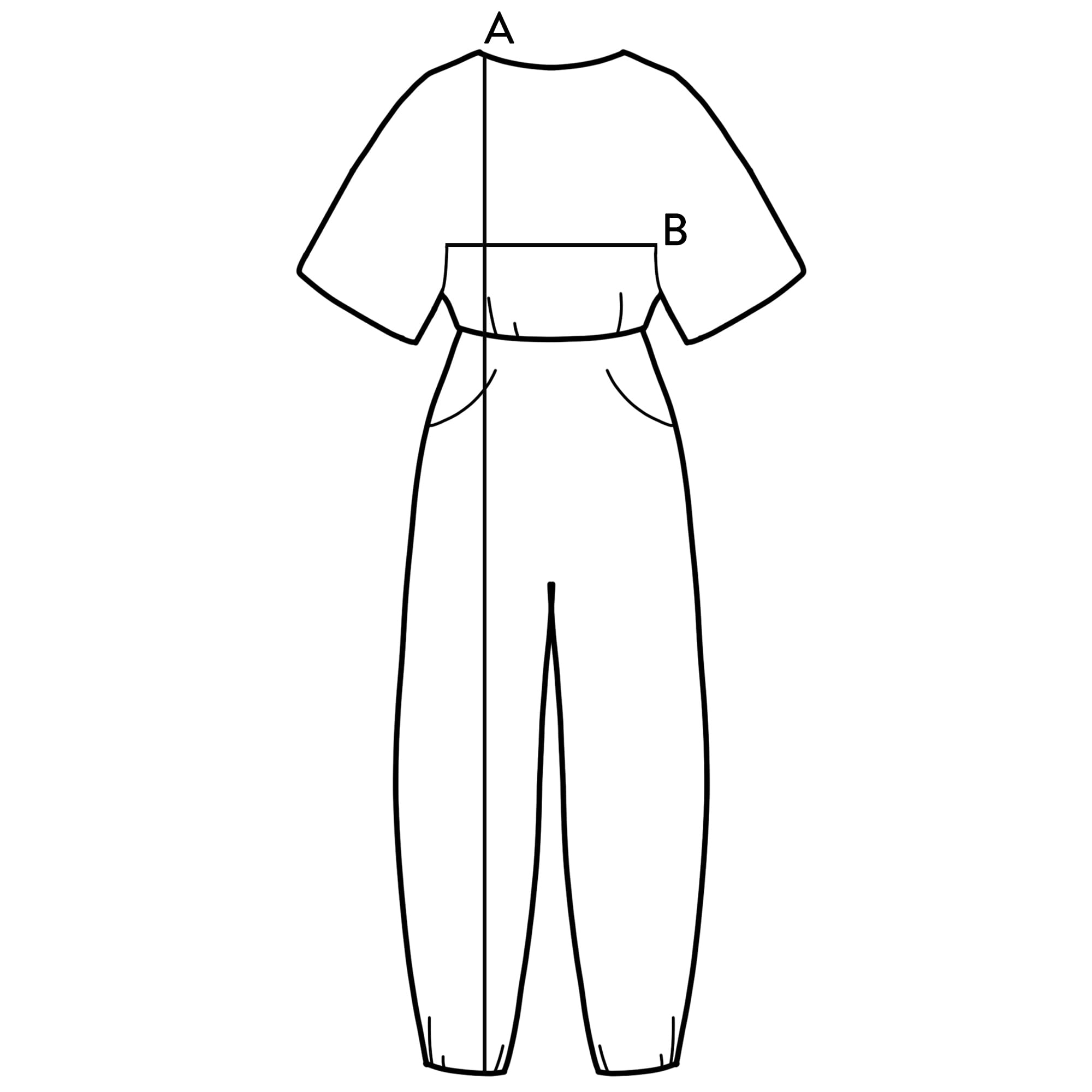 Wymiary: A (długość całkowita) - 135 cm, B (szerokość w biuście) - 49 cm (mierzone na płasko)