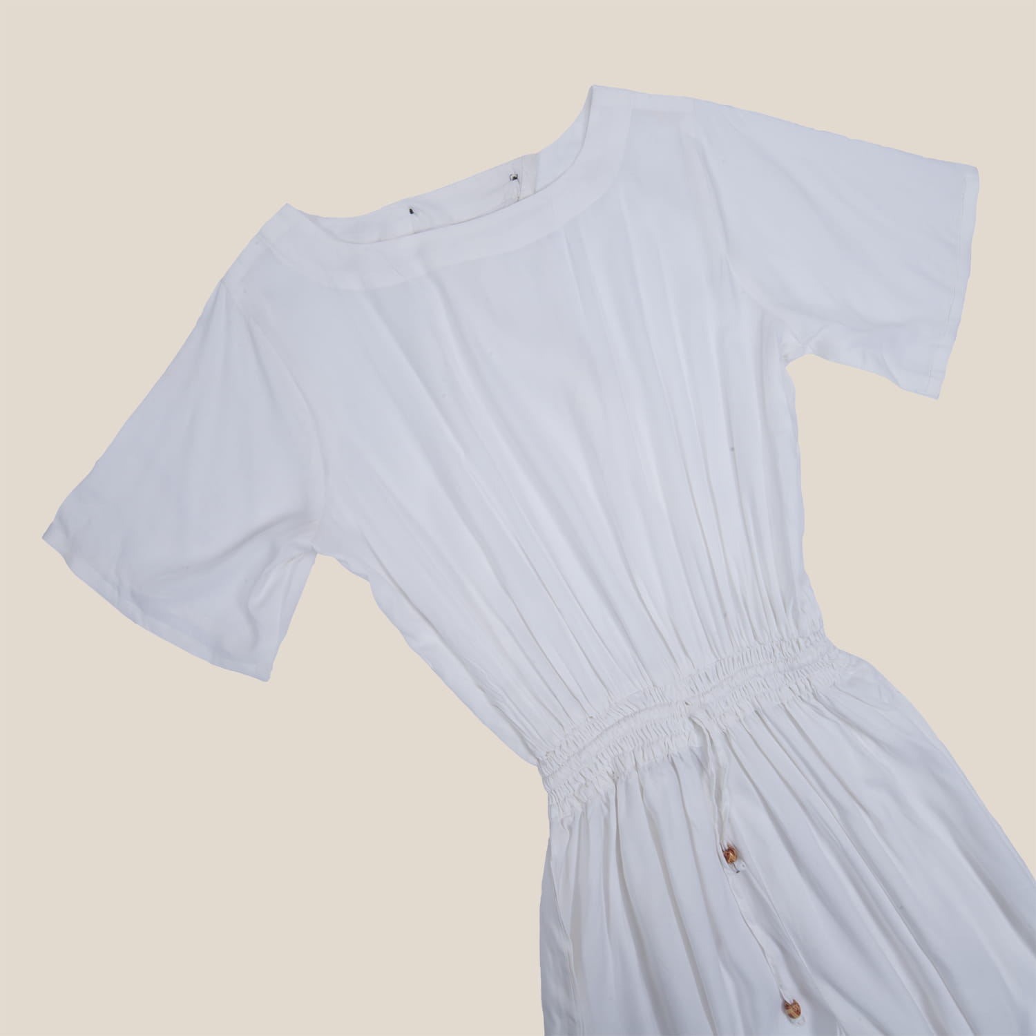 Biały kombinezon z odkrytymi plecami.