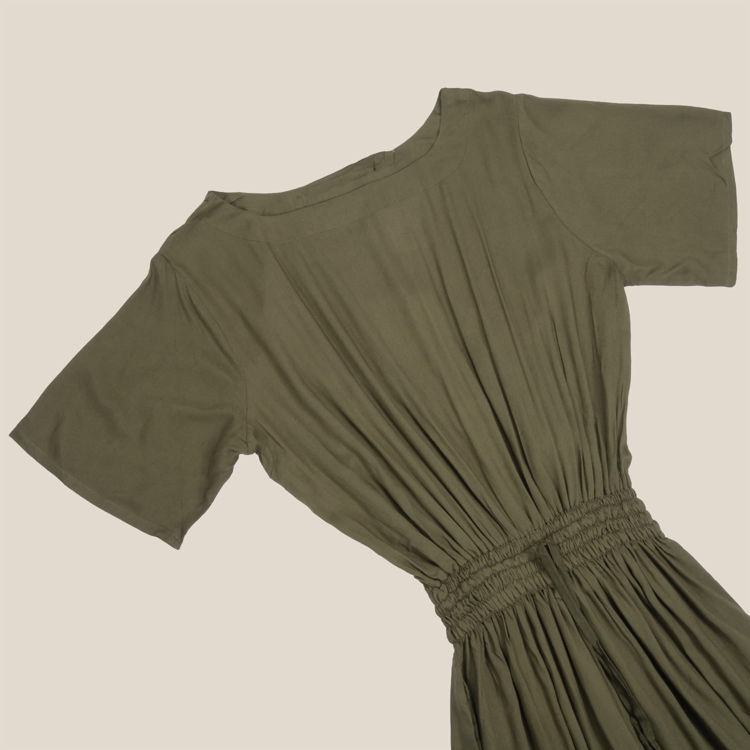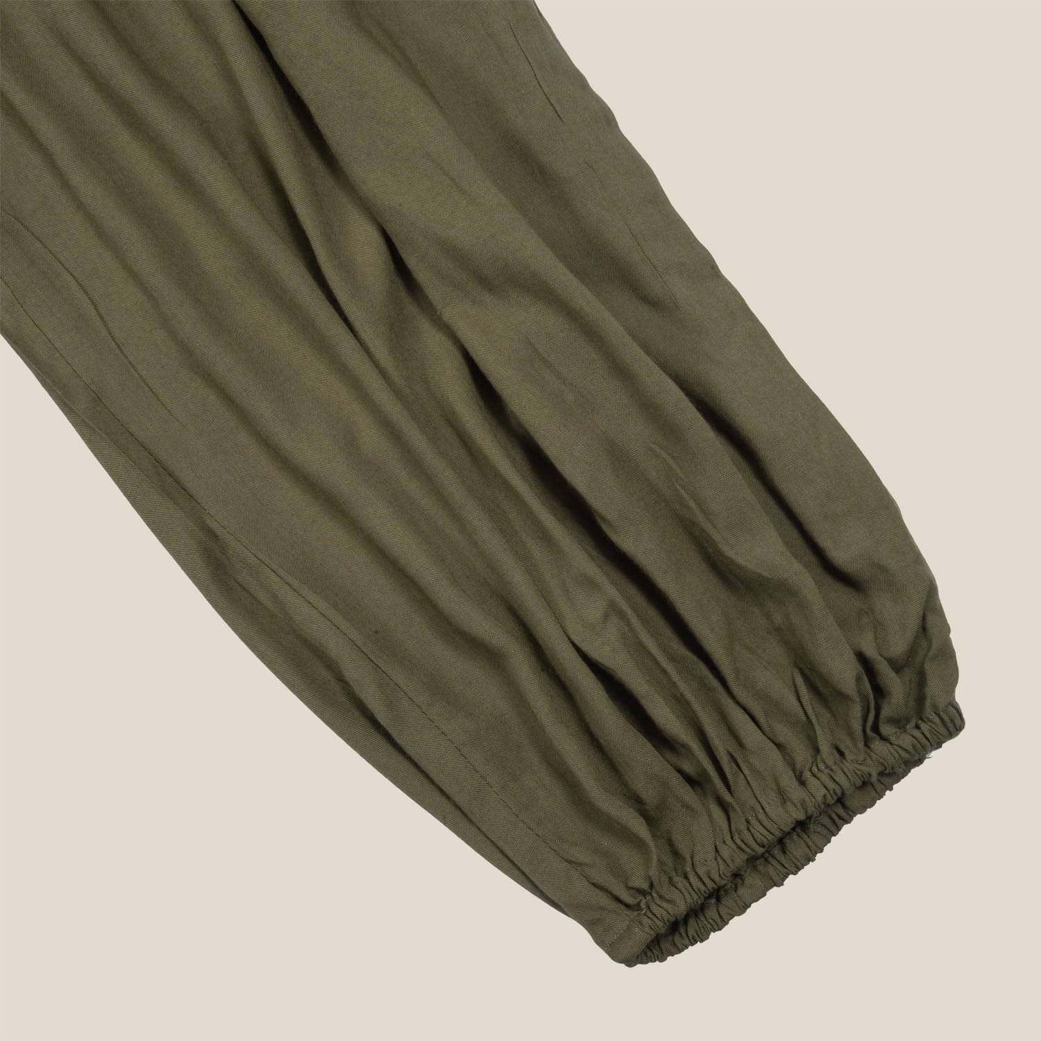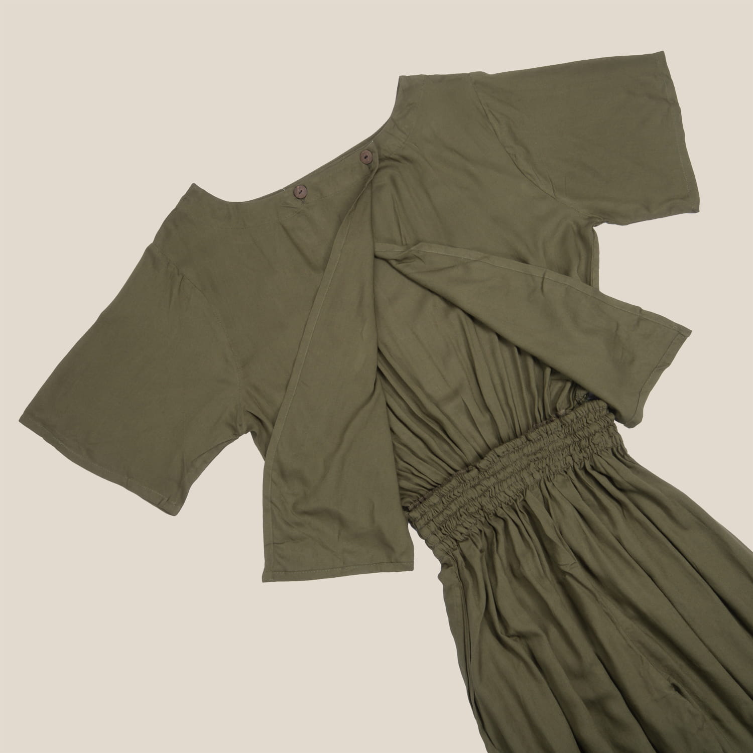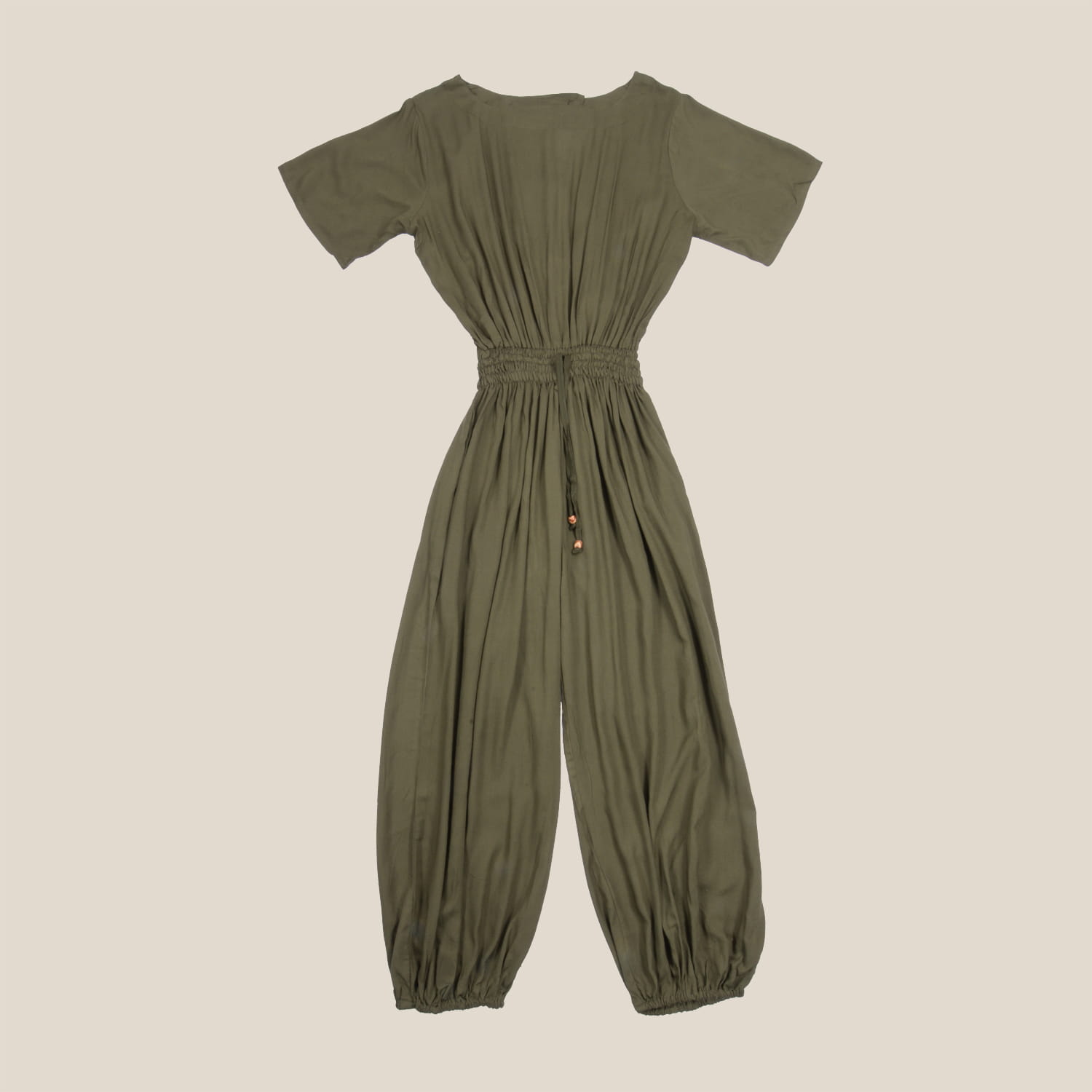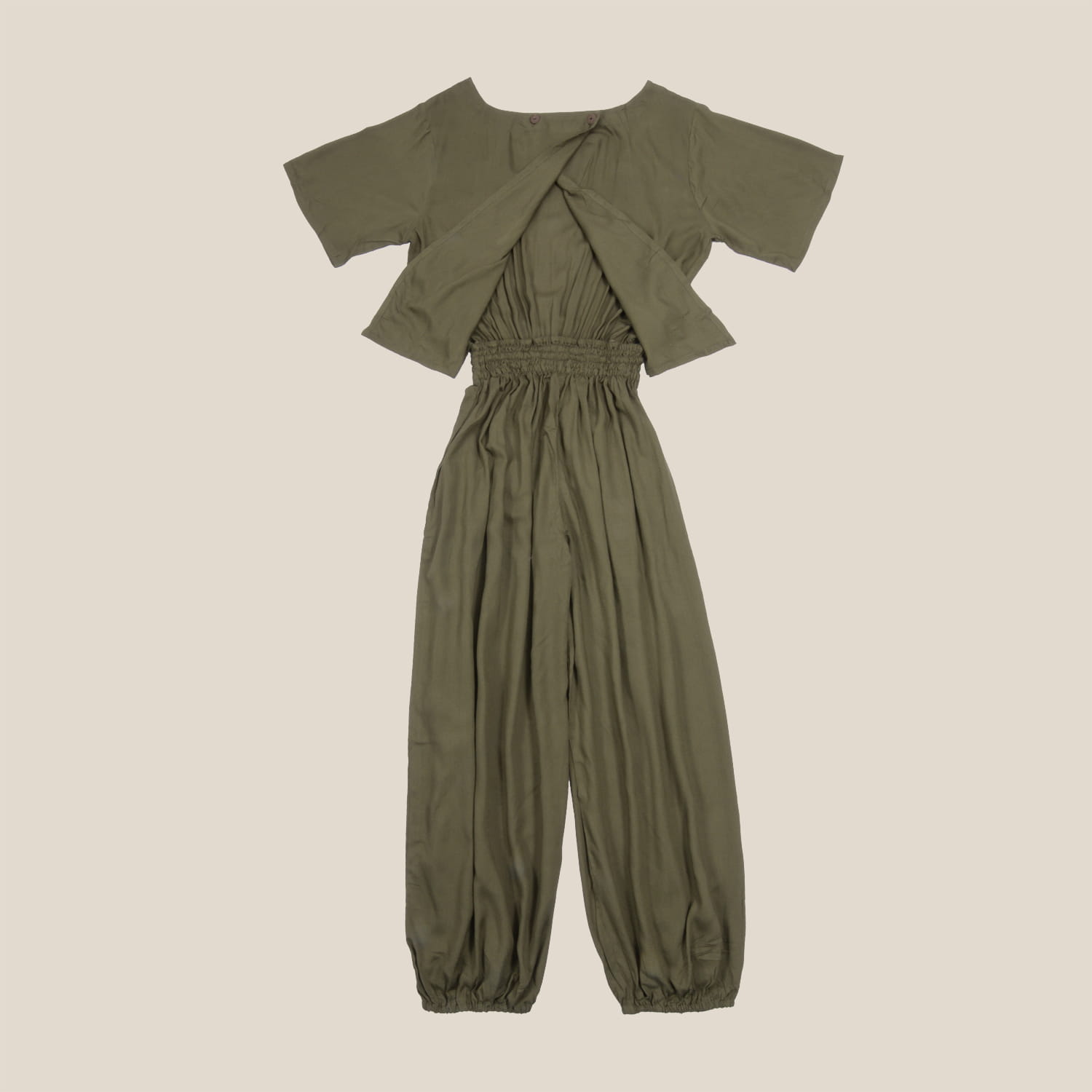 Kombinezon z odkrytymi plecami w kolorze khaki.