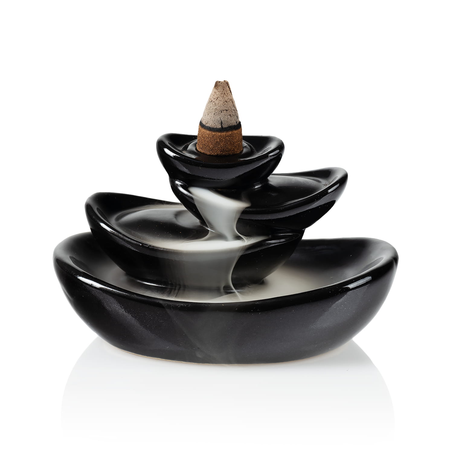 Kominek zapachowy Backflow został zaprojektowany w taki sposób, aby dym z kadzidła stożkowego spływał w dół, tworząc spektakularną kaskadę. Jego wygląd zależy od konstrukcji kominka, co sprawia, że każdy kominek tworzy niepowtarzalny, magiczny efekt.