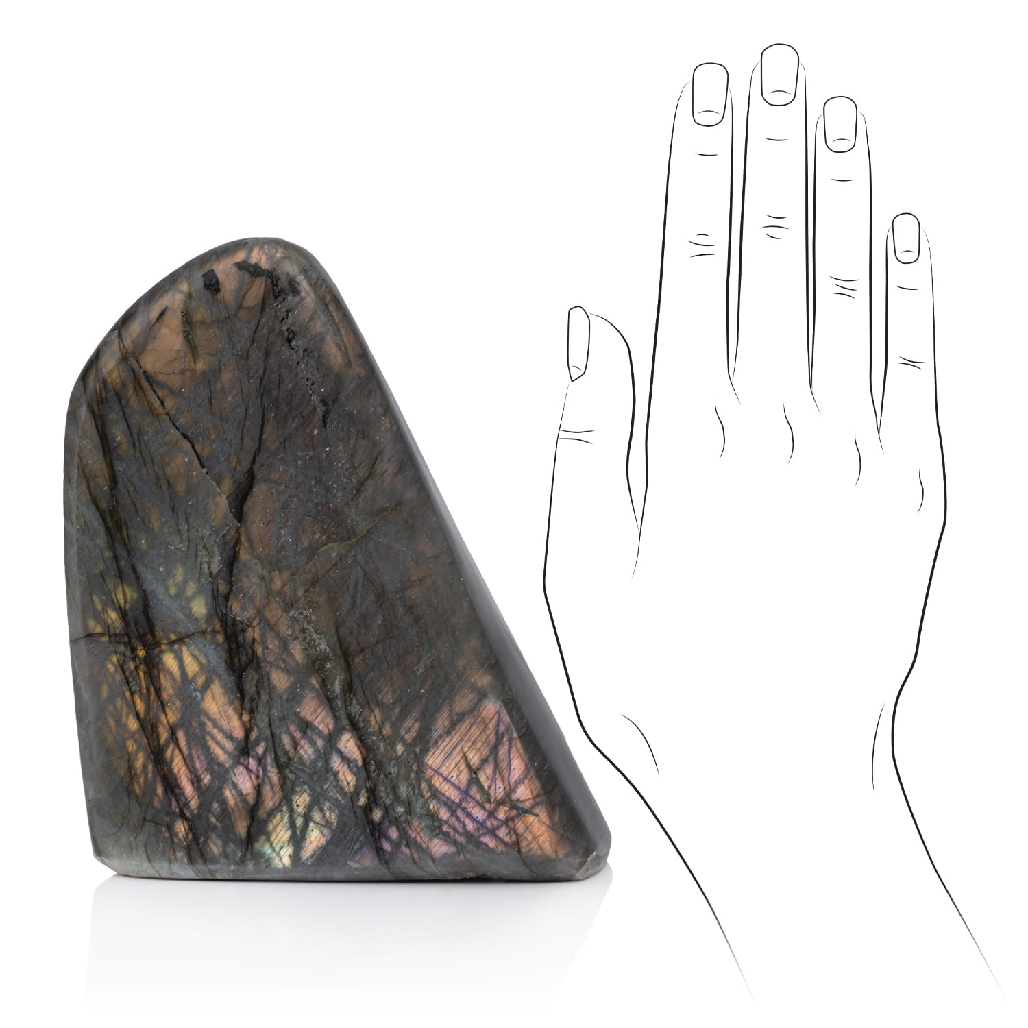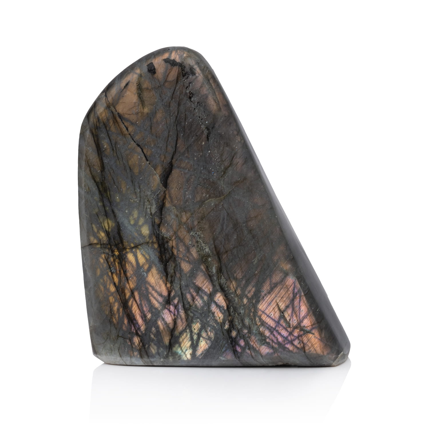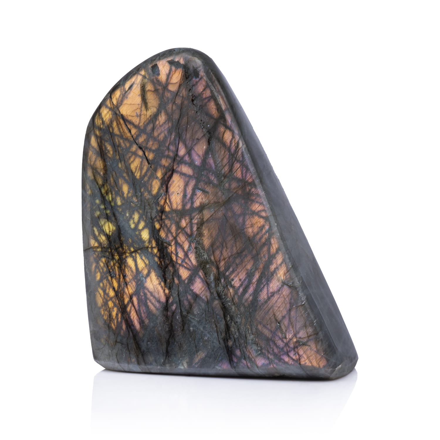 Labradoryt łączy się też z energią ognia, posiada wszystkie kolory płomieni i jest znakiem rozpalania się w nas nowej fazy życia. Ma w sobie symbolikę Feniksa w fazie odradzania się z popiołu i tworzenia przepięknego, tęczowego ptaka. Czas transformacji nasz umysł uważa za niebezpieczny - podobnie, jak śmierć - więc w naszej mądrości wewnętrznej leży szanowanie go. Mamy zauważyć i docenić nową perspektywę spraw, dotychczasowych działań, relacji. Wiemy, co nam przestało służyć i spokojnie dajemy temu wolność.