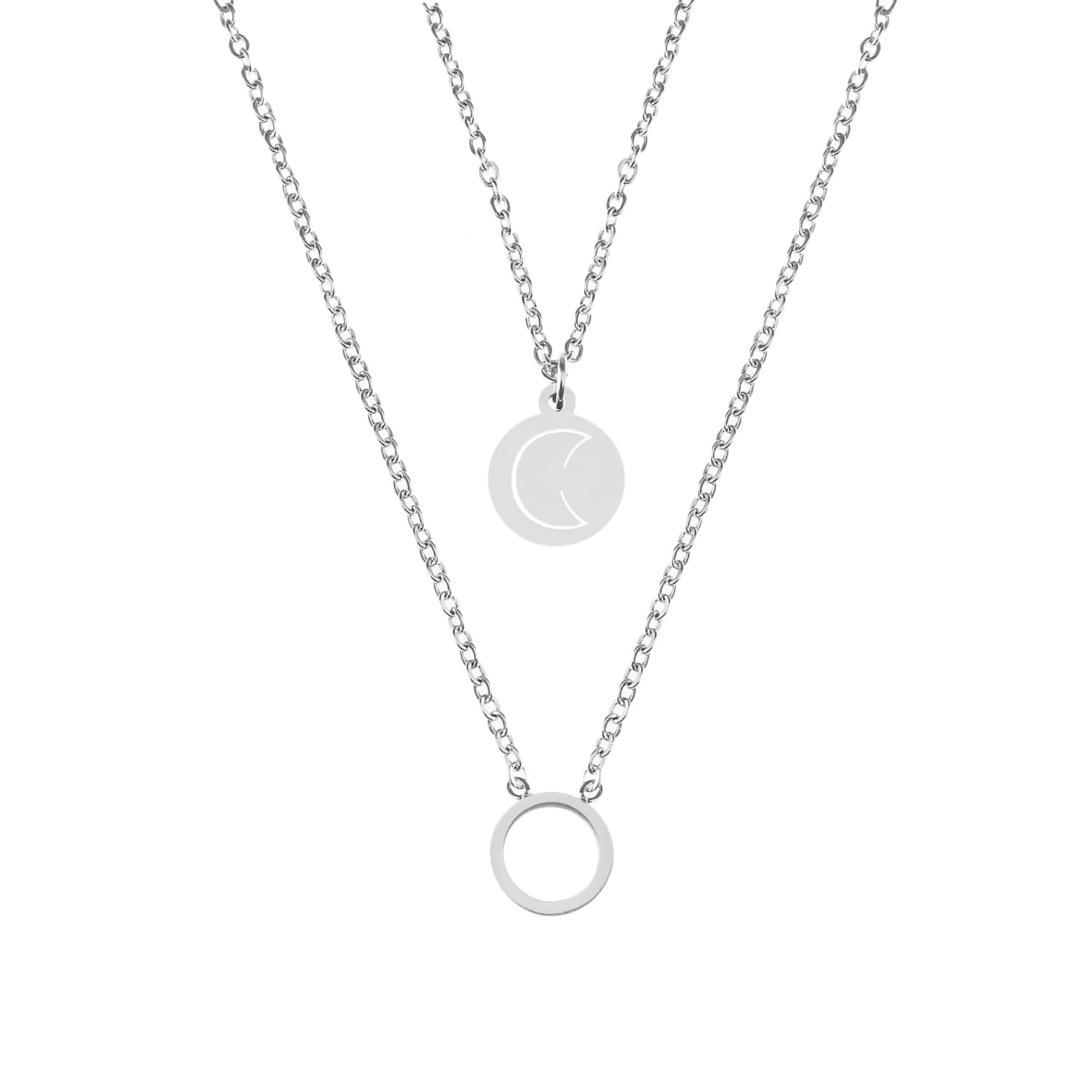 Podwójny naszyjnik wykonany ze stali szlachetnej na łańcuszku o regulowanej długości z symbolem Księżyca.
