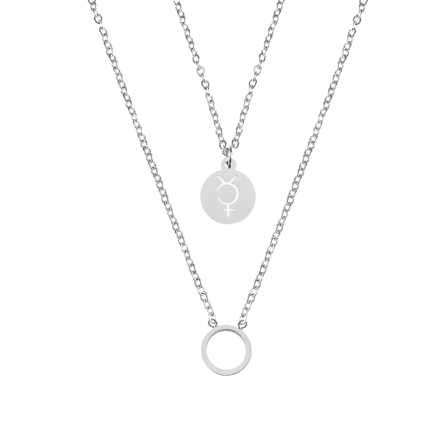 Podwójny naszyjnik wykonany ze stali szlachetnej na łańcuszku o regulowanej długości z symbolem planety Merkury