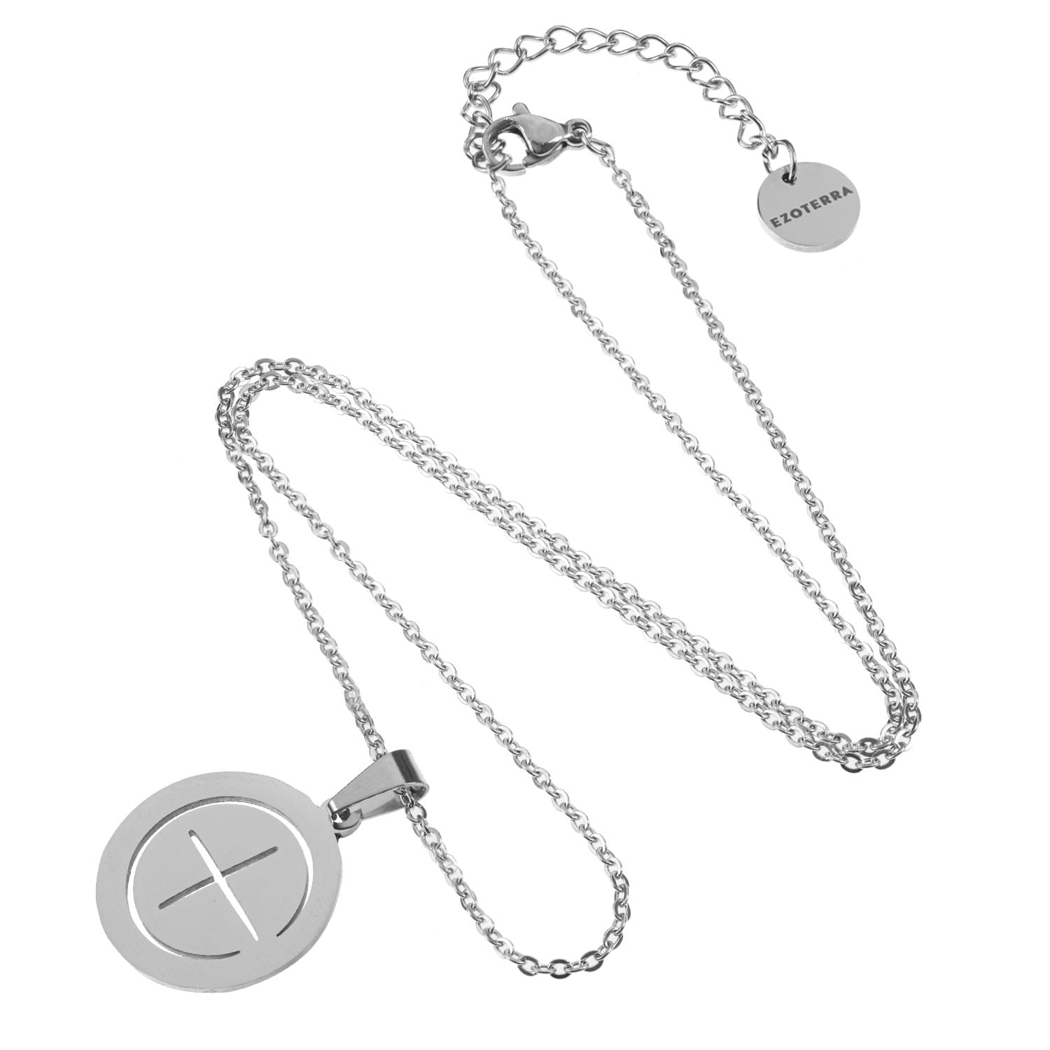 Naszyjnik z okrągłą zawieszką, w którą wkomponowano symbol planety. Wszystkie elementy wykonano ze stali szlachetnej. Dodatkowo łańcuszek posiada możliwość regulowania długości.