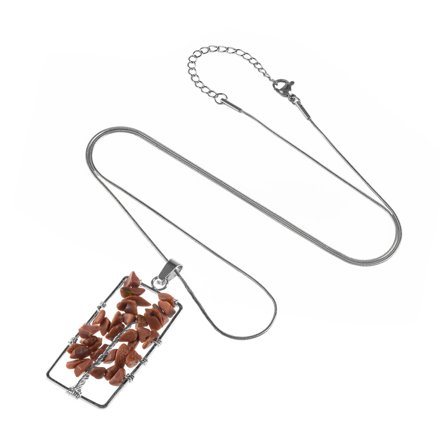 Prostokątny naszyjnik z ręcznie plecionym Drzewem Życia wykonany ze stali szlachetnej i kamieni na łańcuszku o regulowanej długości.