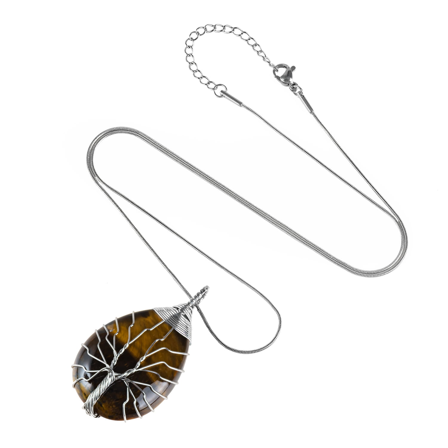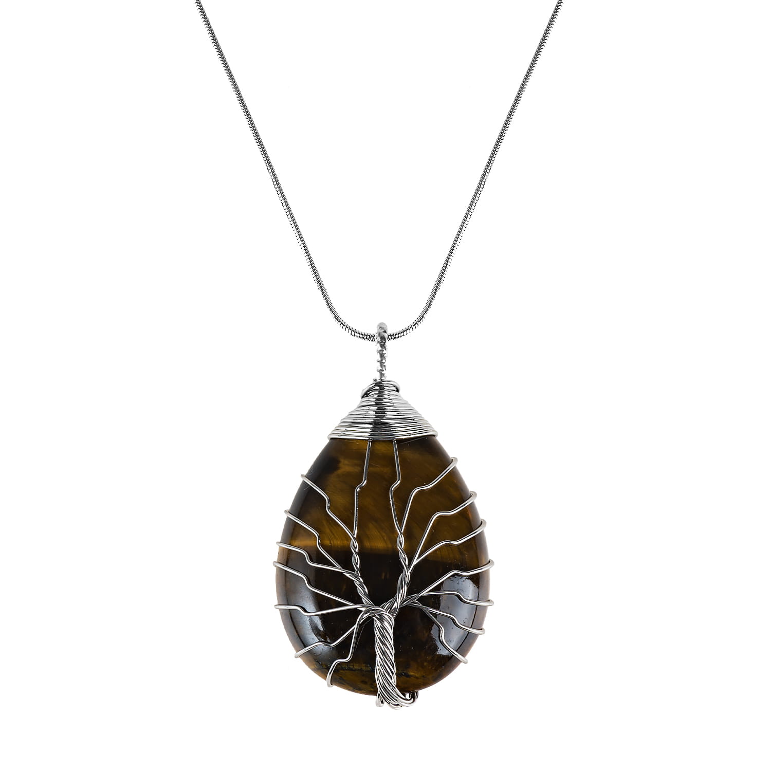 Naszyjnik z Tygrysim Okiem ozdobiony ręcznie plecionym Drzewem Życia.