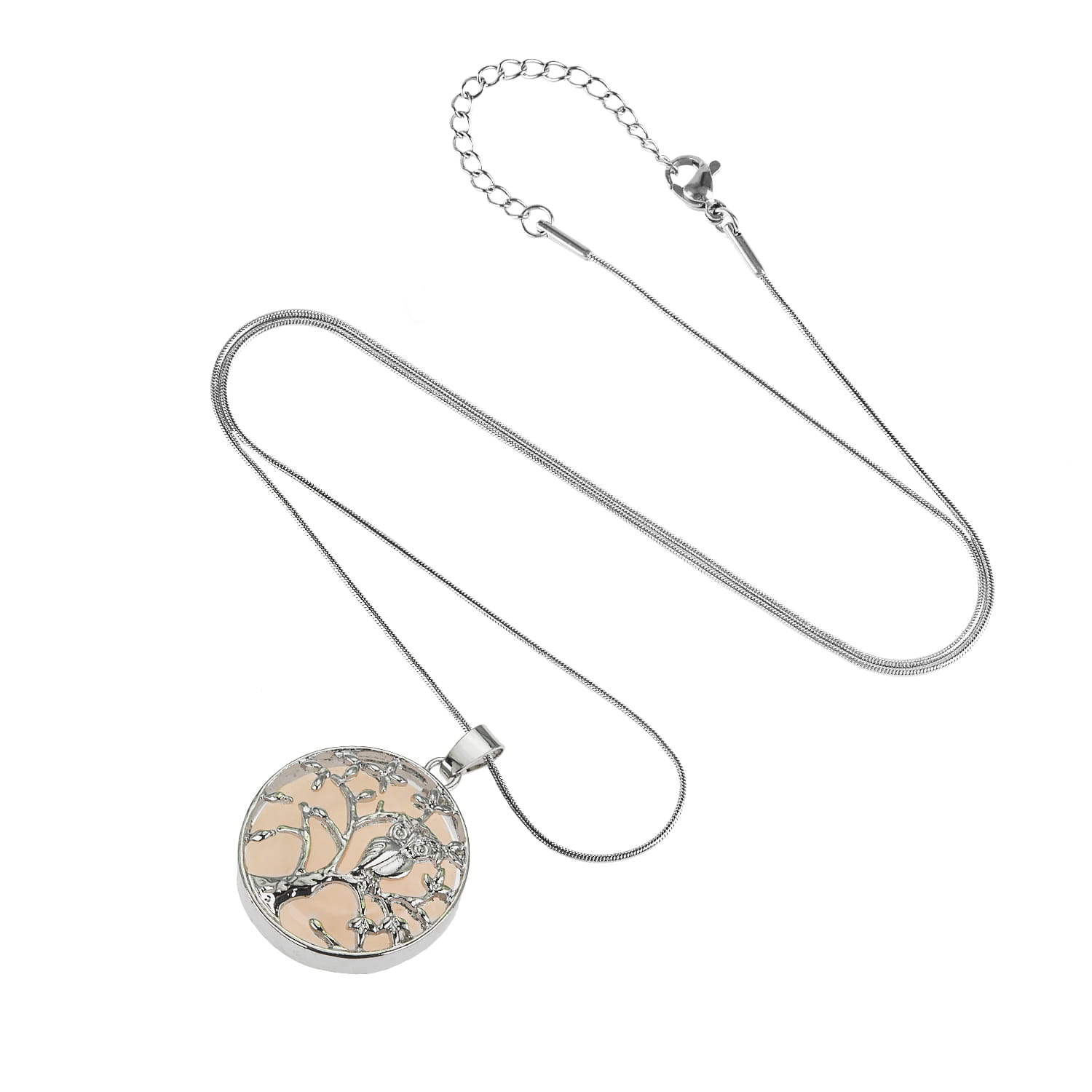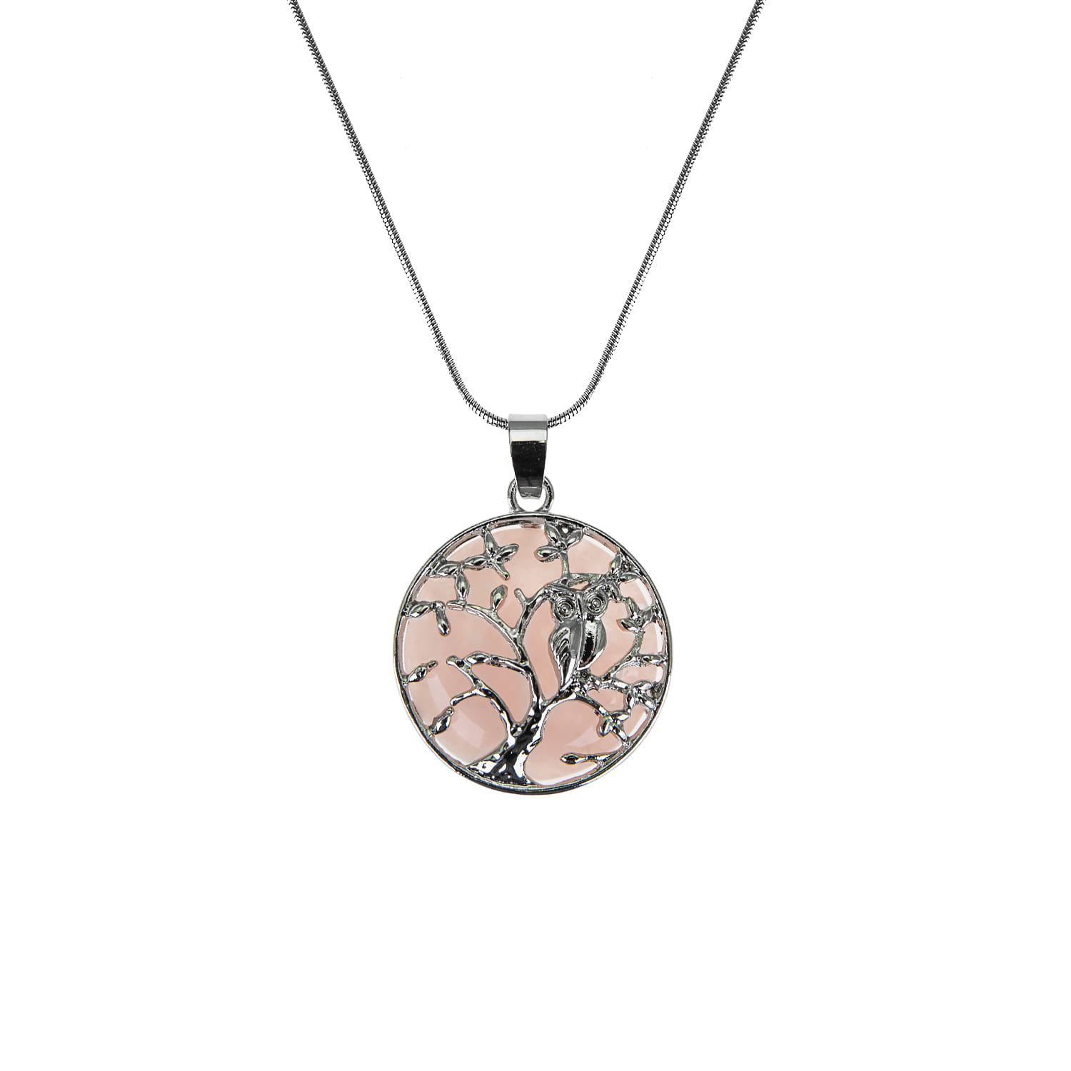 Naszyjnik - Drzewo Życia z sową - Kwarc różowy