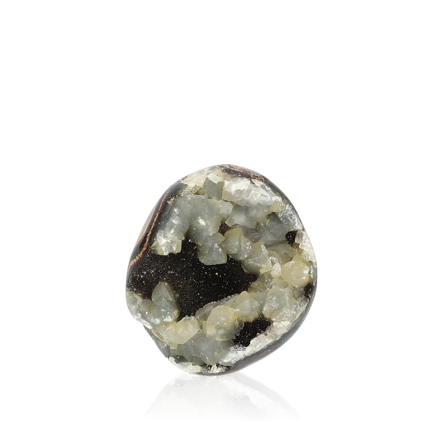 Jajo septariowe może nam mówić o początku tego, co w nas się rozpoczyna, czyli, że potrzebujemy spojrzeć na siebie od nowa, jako na istotę, która poszukuje na powrót swojego kodu, poszukuje tego, co ma właściwie zrobić. Forma jaja, które ma rodzaj tego, co ma jajo w sobie, czyli jakie ma zgromadzone wszystkie niezbędne zasoby do tego, żeby odkryć swoją drogę przeznaczenia, żeby pękła ta skorupa i żeby rzeczywiście z jaja wykluło się coś, z tego ziarna powstało życie, moje życie, dokładnie moje, nie jakieś tam, na czyichś zasadach czy z czyichś rodziców, tylko moje. Nawet, jeżeli moje zasoby były z jakichś ściśle określonych substancji, to to, co powstaje, jest absolutnie cudem.To jest właśnie smocze jajo. Powstajemy z tego jako ludzie na nowo, potrafimy się wtedy osadzić w swoim życiu, w sobie, że słyszymy, czujemy swój kierunek. Możemy do końca życia nie wiedzieć, że jesteśmy jakimś mistrzem od czegoś, ale chodzi o to, żeby już pójść w swoim kierunku, czyli zacząć robić to, co się lubi dokładnie teraz, w tym momencie, będąc w jakiejś pracy, czy będąc w jakimś stanie jeszcze nie odczuwania swojej ścieżki, to możemy zrobić ten jeden pierwszy krok i on jest najważniejszy, że po prostu już teraz idę swoją ścieżką.