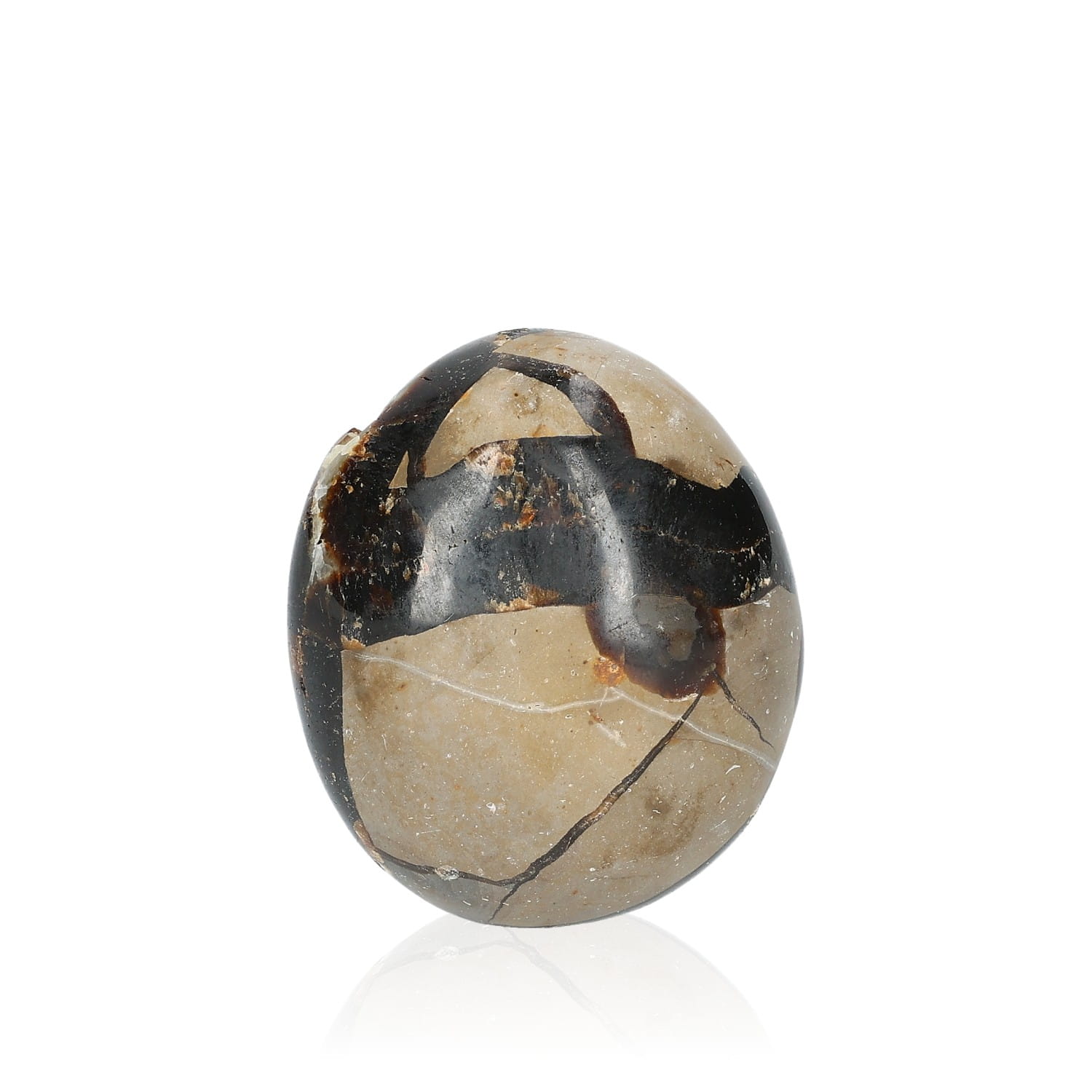 Jajo septariowe może nam mówić o początku tego, co w nas się rozpoczyna, czyli, że potrzebujemy spojrzeć na siebie od nowa, jako na istotę, która poszukuje na powrót swojego kodu, poszukuje tego, co ma właściwie zrobić. Forma jaja, które ma rodzaj tego, co ma jajo w sobie, czyli jakie ma zgromadzone wszystkie niezbędne zasoby do tego, żeby odkryć swoją drogę przeznaczenia, żeby pękła ta skorupa i żeby rzeczywiście z jaja wykluło się coś, z tego ziarna powstało życie, moje życie, dokładnie moje, nie jakieś tam, na czyichś zasadach czy z czyichś rodziców, tylko moje. Nawet, jeżeli moje zasoby były z jakichś ściśle określonych substancji, to to, co powstaje, jest absolutnie cudem.To jest właśnie smocze jajo. Powstajemy z tego jako ludzie na nowo, potrafimy się wtedy osadzić w swoim życiu, w sobie, że słyszymy, czujemy swój kierunek. Możemy do końca życia nie wiedzieć, że jesteśmy jakimś mistrzem od czegoś, ale chodzi o to, żeby już pójść w swoim kierunku, czyli zacząć robić to, co się lubi dokładnie teraz, w tym momencie, będąc w jakiejś pracy, czy będąc w jakimś stanie jeszcze nie odczuwania swojej ścieżki, to możemy zrobić ten jeden pierwszy krok i on jest najważniejszy, że po prostu już teraz idę swoją ścieżką.