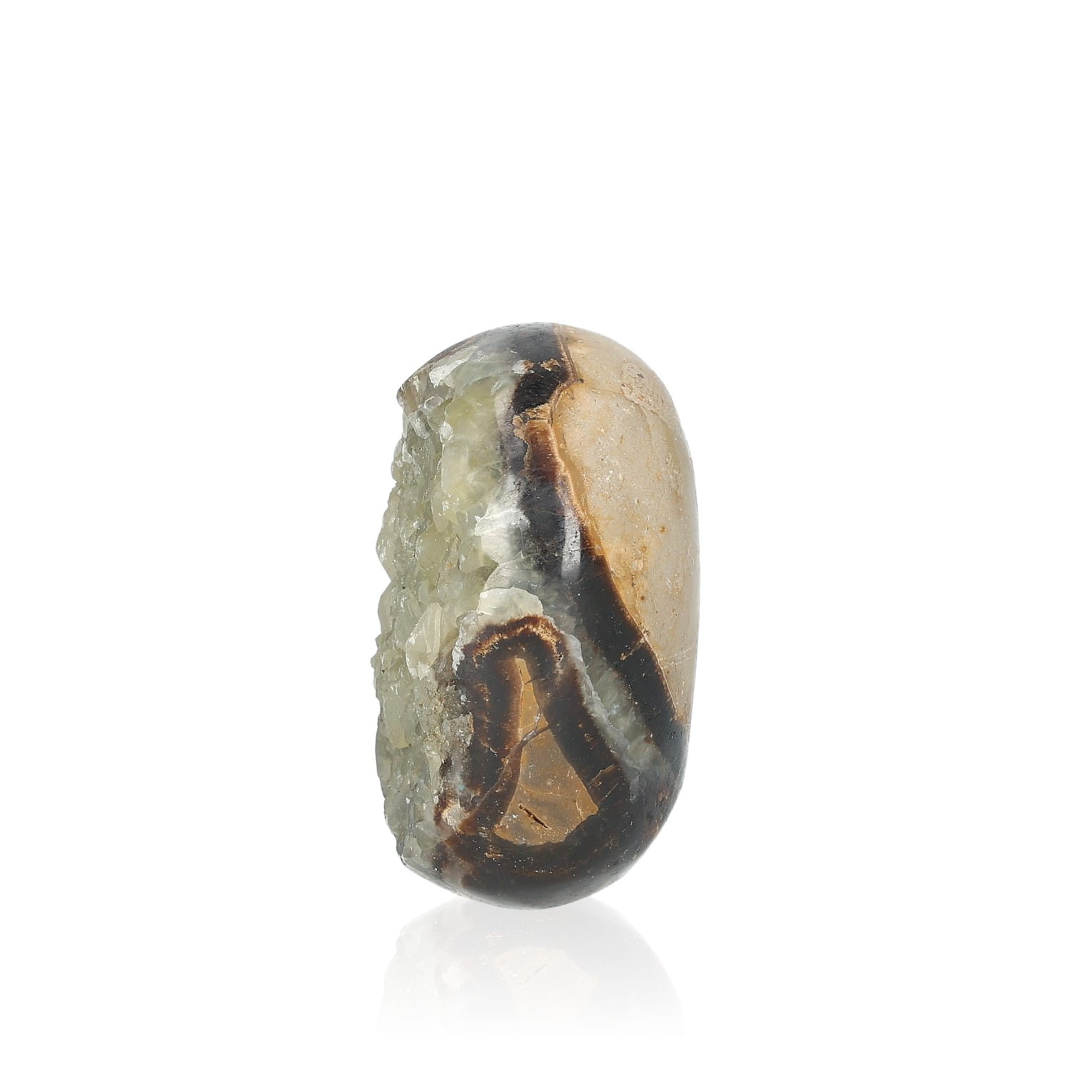 Jajo septariowe może nam mówić o początku tego, co w nas się rozpoczyna, czyli, że potrzebujemy spojrzeć na siebie od nowa, jako na istotę, która poszukuje na powrót swojego kodu, poszukuje tego, co ma właściwie zrobić. Forma jaja, które ma rodzaj tego, co ma jajo w sobie, czyli jakie ma zgromadzone wszystkie niezbędne zasoby do tego, żeby odkryć swoją drogę przeznaczenia, żeby pękła ta skorupa i żeby rzeczywiście z jaja wykluło się coś, z tego ziarna powstało życie, moje życie, dokładnie moje, nie jakieś tam, na czyichś zasadach czy z czyichś rodziców, tylko moje. Nawet, jeżeli moje zasoby były z jakichś ściśle określonych substancji, to to, co powstaje, jest absolutnie cudem.To jest właśnie smocze jajo. Powstajemy z tego jako ludzie na nowo, potrafimy się wtedy osadzić w swoim życiu, w sobie, że słyszymy, czujemy swój kierunek. Możemy do końca życia nie wiedzieć, że jesteśmy jakimś mistrzem od czegoś, ale chodzi o to, żeby już pójść w swoim kierunku, czyli zacząć robić to, co się lubi dokładnie teraz, w tym momencie, będąc w jakiejś pracy, czy będąc w jakimś stanie jeszcze nie odczuwania swojej ścieżki, to możemy zrobić ten jeden pierwszy krok i on jest najważniejszy, że po prostu już teraz idę swoją ścieżką.