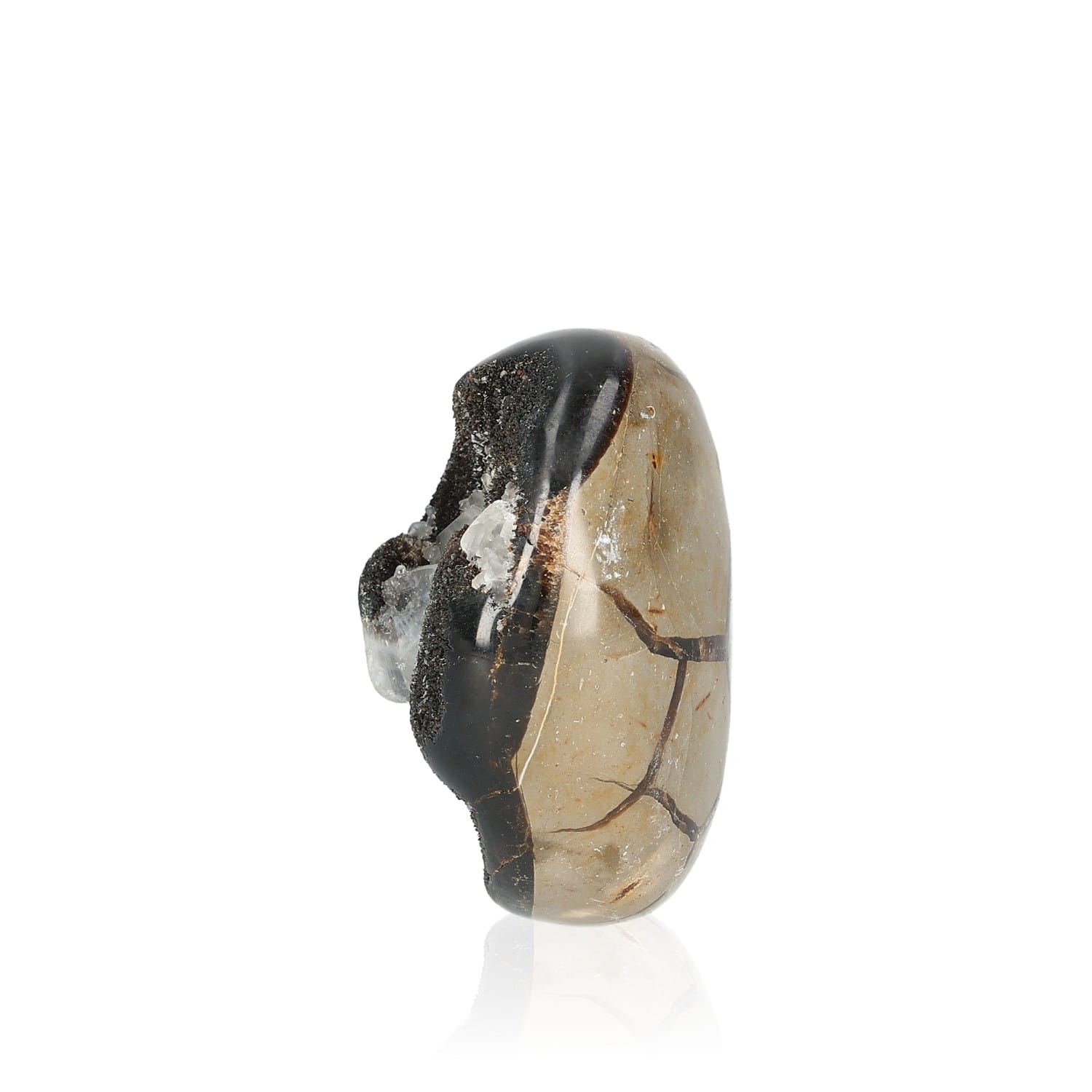 Jajo septariowe może nam mówić o początku tego, co w nas się rozpoczyna, czyli, że potrzebujemy spojrzeć na siebie od nowa, jako na istotę, która poszukuje na powrót swojego kodu, poszukuje tego, co ma właściwie zrobić. Forma jaja, które ma rodzaj tego, co ma jajo w sobie, czyli jakie ma zgromadzone wszystkie niezbędne zasoby do tego, żeby odkryć swoją drogę przeznaczenia, żeby pękła ta skorupa i żeby rzeczywiście z jaja wykluło się coś, z tego ziarna powstało życie, moje życie, dokładnie moje, nie jakieś tam, na czyichś zasadach czy z czyichś rodziców, tylko moje. Nawet, jeżeli moje zasoby były z jakichś ściśle określonych substancji, to to, co powstaje, jest absolutnie cudem.To jest właśnie smocze jajo. Powstajemy z tego jako ludzie na nowo, potrafimy się wtedy osadzić w swoim życiu, w sobie, że słyszymy, czujemy swój kierunek. Możemy do końca życia nie wiedzieć, że jesteśmy jakimś mistrzem od czegoś, ale chodzi o to, żeby już pójść w swoim kierunku, czyli zacząć robić to, co się lubi dokładnie teraz, w tym momencie, będąc w jakiejś pracy, czy będąc w jakimś stanie jeszcze nie odczuwania swojej ścieżki, to możemy zrobić ten jeden pierwszy krok i on jest najważniejszy, że po prostu już teraz idę swoją ścieżką.