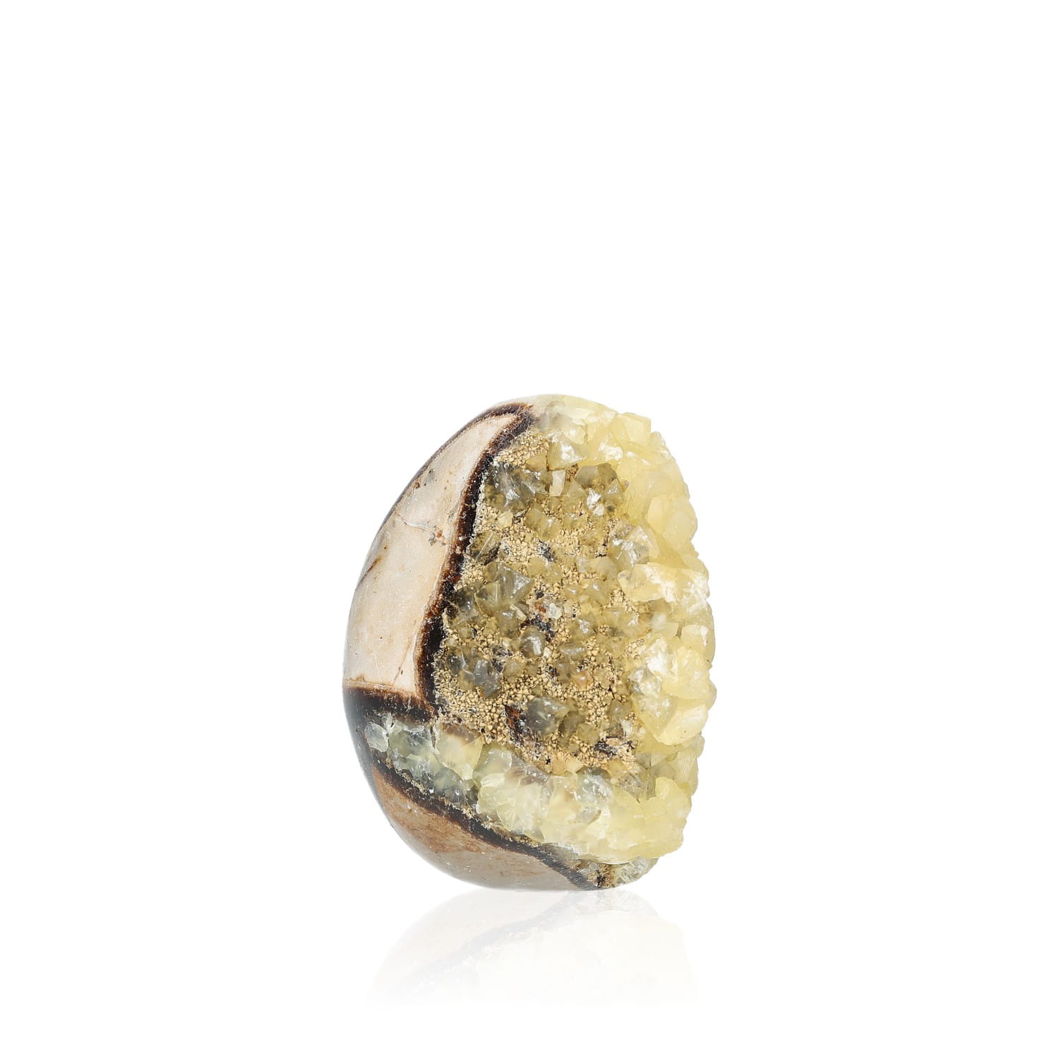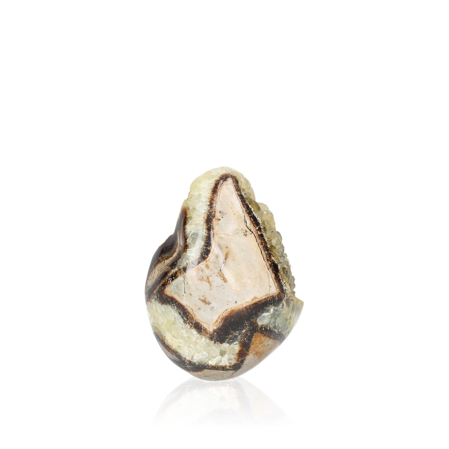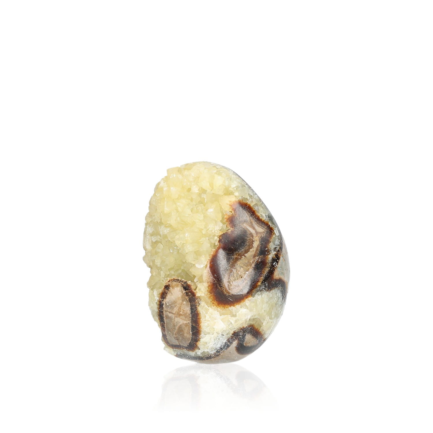 Jajo septariowe może nam mówić o początku tego, co w nas się rozpoczyna, czyli, że potrzebujemy spojrzeć na siebie od nowa, jako na istotę, która poszukuje na powrót swojego kodu, poszukuje tego, co ma właściwie zrobić. Forma jaja, które ma rodzaj tego, co ma jajo w sobie, czyli jakie ma zgromadzone wszystkie niezbędne zasoby do tego, żeby odkryć swoją drogę przeznaczenia, żeby pękła ta skorupa i żeby rzeczywiście z jaja wykluło się coś, z tego ziarna powstało życie, moje życie, dokładnie moje, nie jakieś tam, na czyichś zasadach czy z czyichś rodziców, tylko moje. Nawet, jeżeli moje zasoby były z jakichś ściśle określonych substancji, to to, co powstaje, jest absolutnie cudem.To jest właśnie smocze jajo. Powstajemy z tego jako ludzie na nowo, potrafimy się wtedy osadzić w swoim życiu, w sobie, że słyszymy, czujemy swój kierunek. Możemy do końca życia nie wiedzieć, że jesteśmy jakimś mistrzem od czegoś, ale chodzi o to, żeby już pójść w swoim kierunku, czyli zacząć robić to, co się lubi dokładnie teraz, w tym momencie, będąc w jakiejś pracy, czy będąc w jakimś stanie jeszcze nie odczuwania swojej ścieżki, to możemy zrobić ten jeden pierwszy krok i on jest najważniejszy, że po prostu już teraz idę swoją ścieżką.